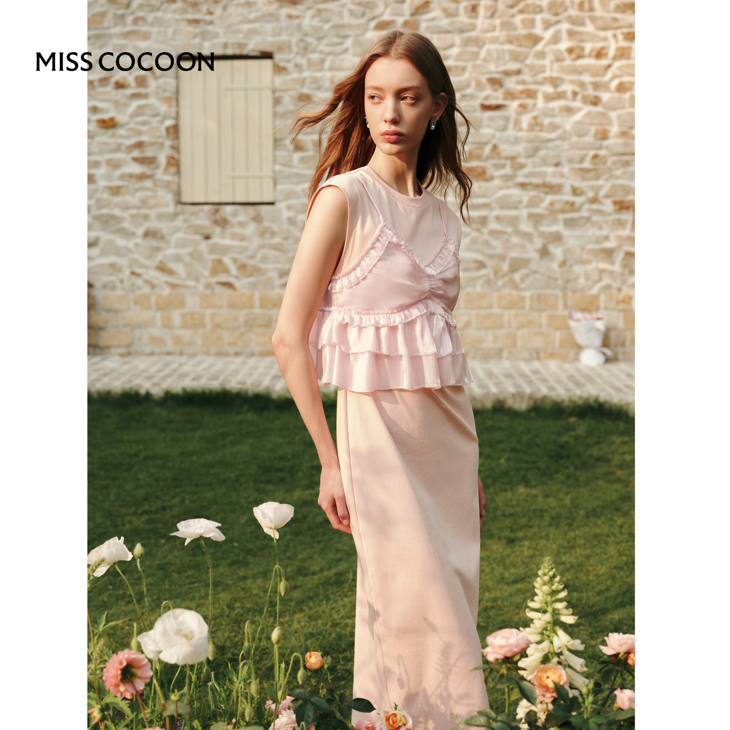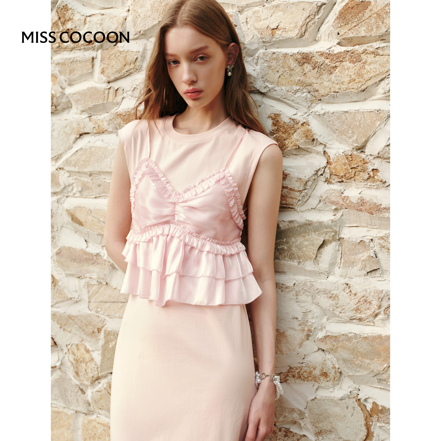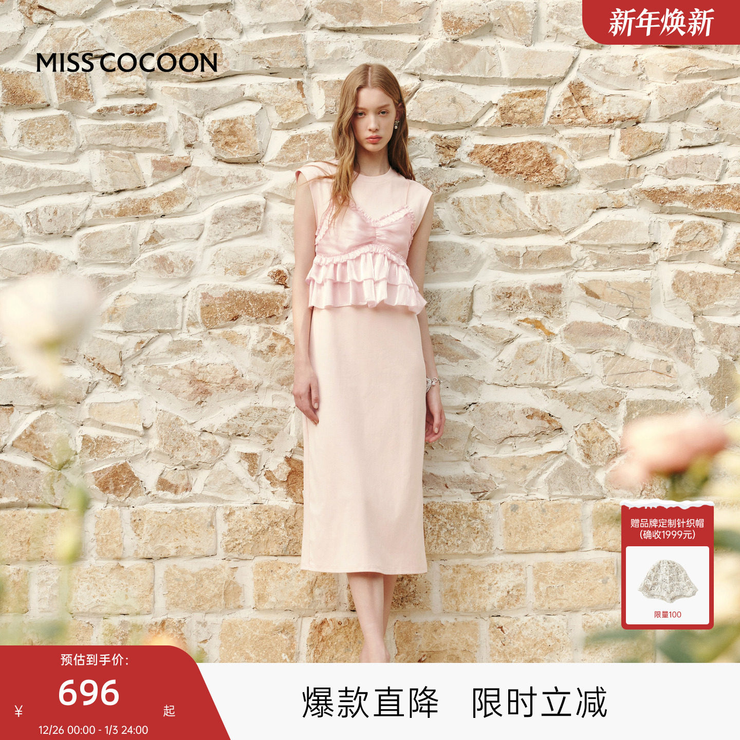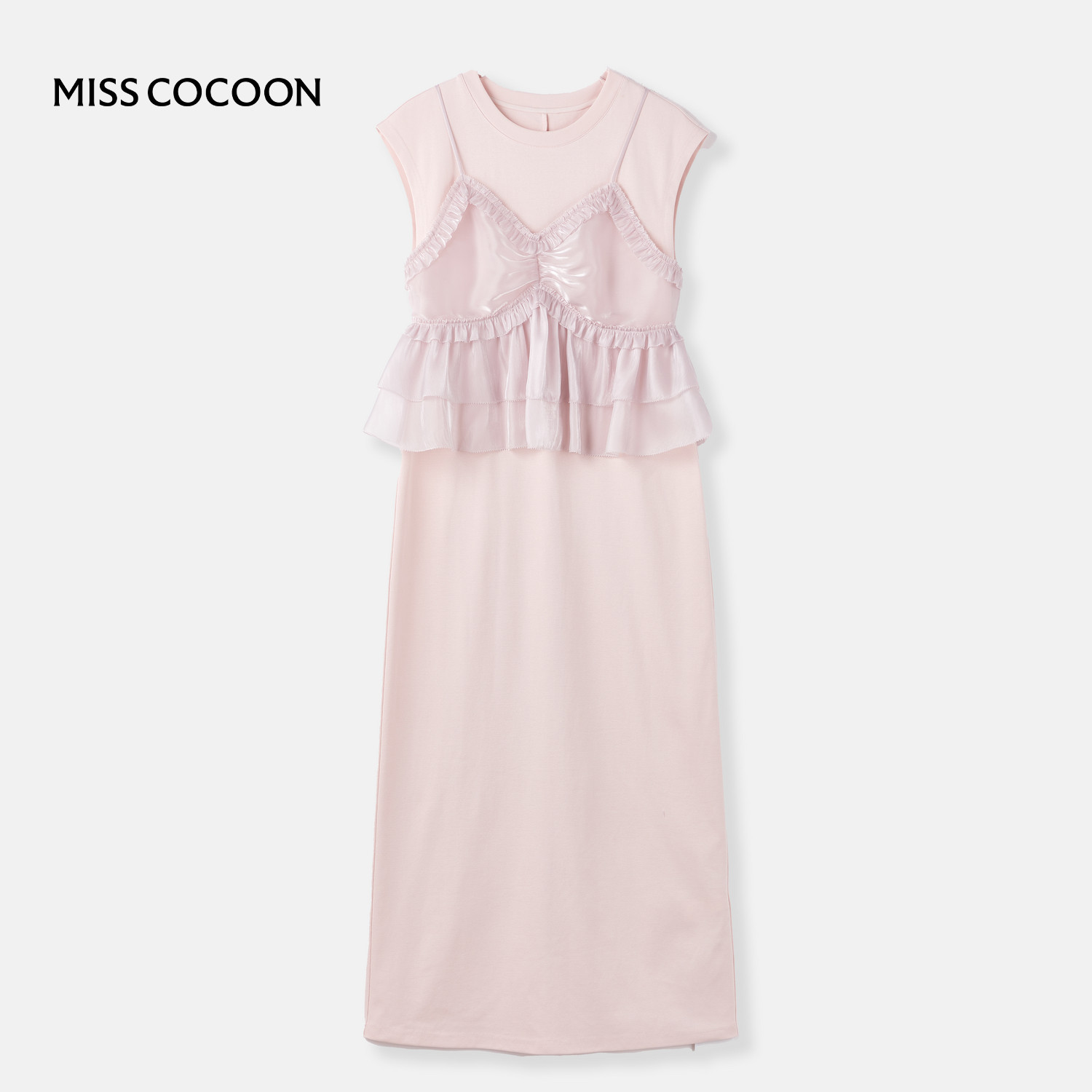 可可尼cocoon可拆卸荷叶边吊带针织连衣裙女2025秋季新款紫色长裙