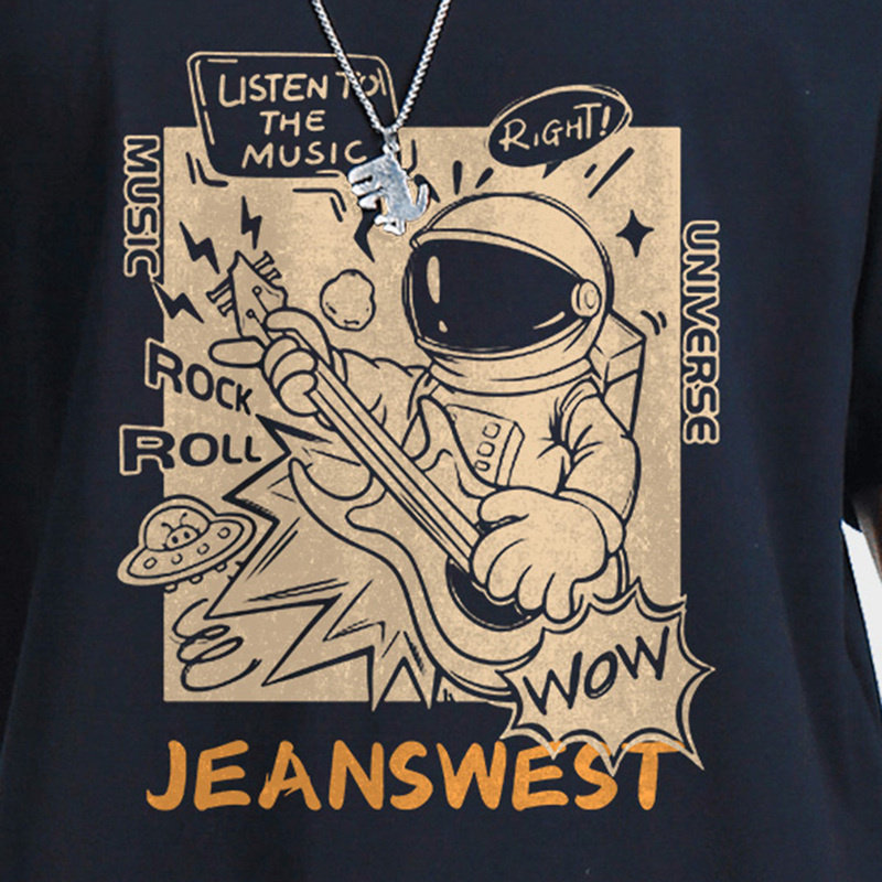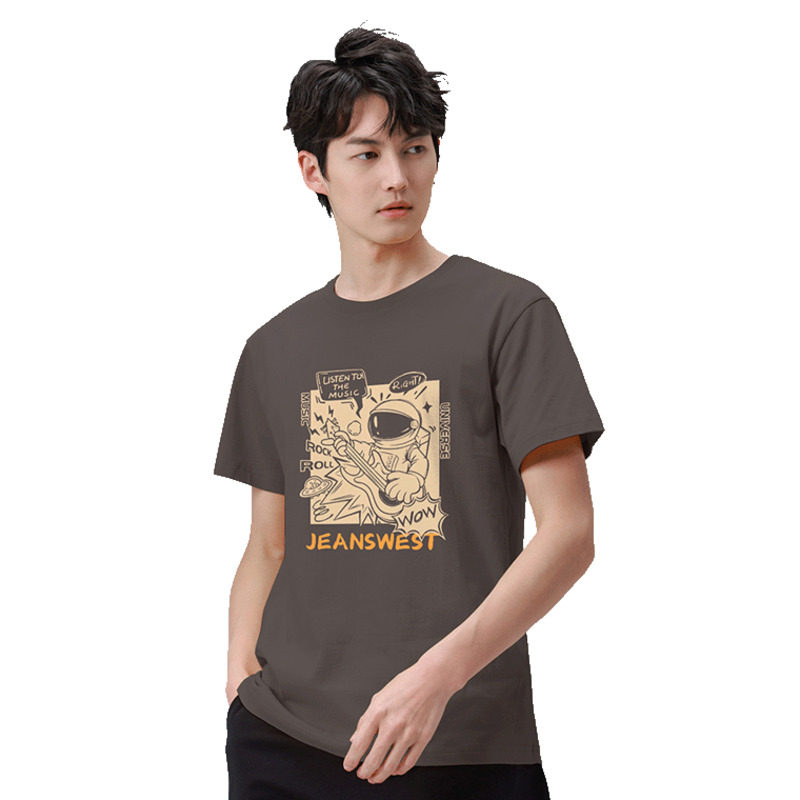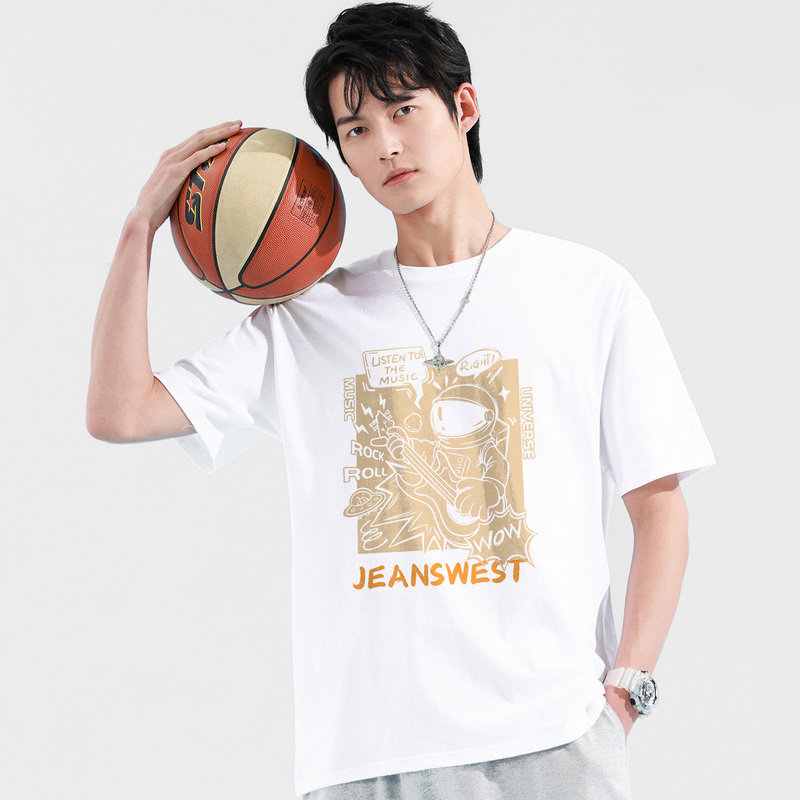JR真维斯男装夏季青年纯棉时尚圆领宇航员印花休闲潮流短袖T恤衫