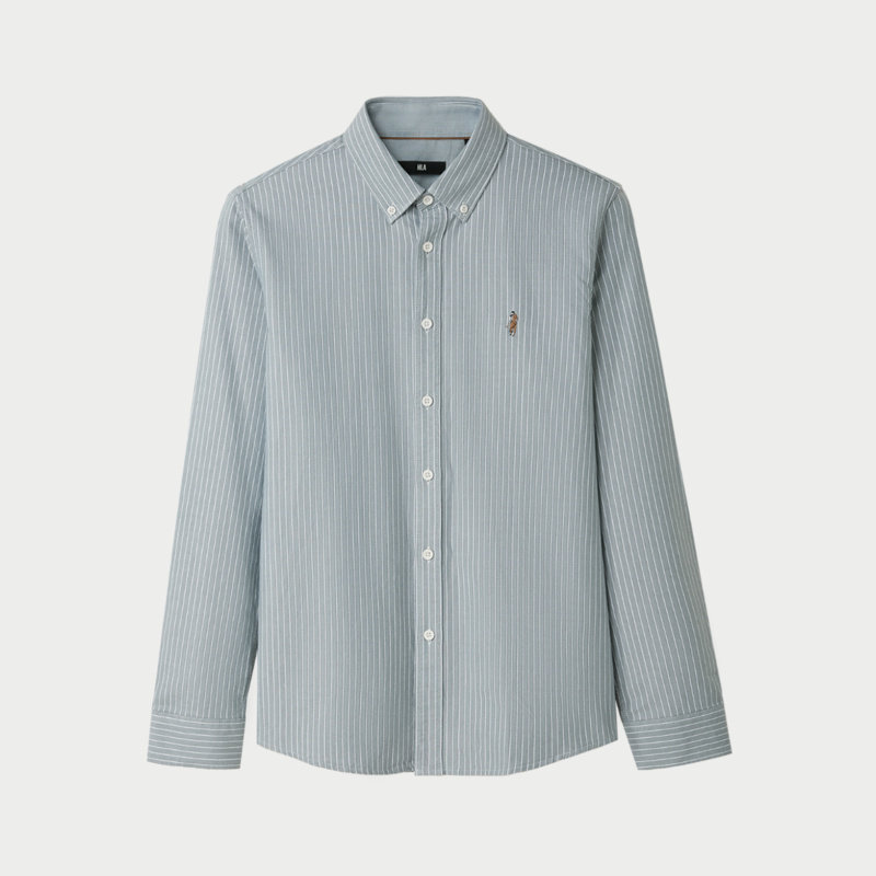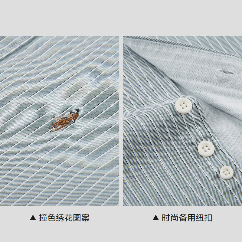 100%纯棉红豆牛津纺衬衫男长袖新款条纹休闲蓝色衬衣男士送老公