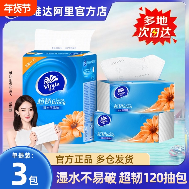 维达超韧抽纸120抽3包S码整提实惠装面巾纸抽纸家用餐巾纸卫生纸