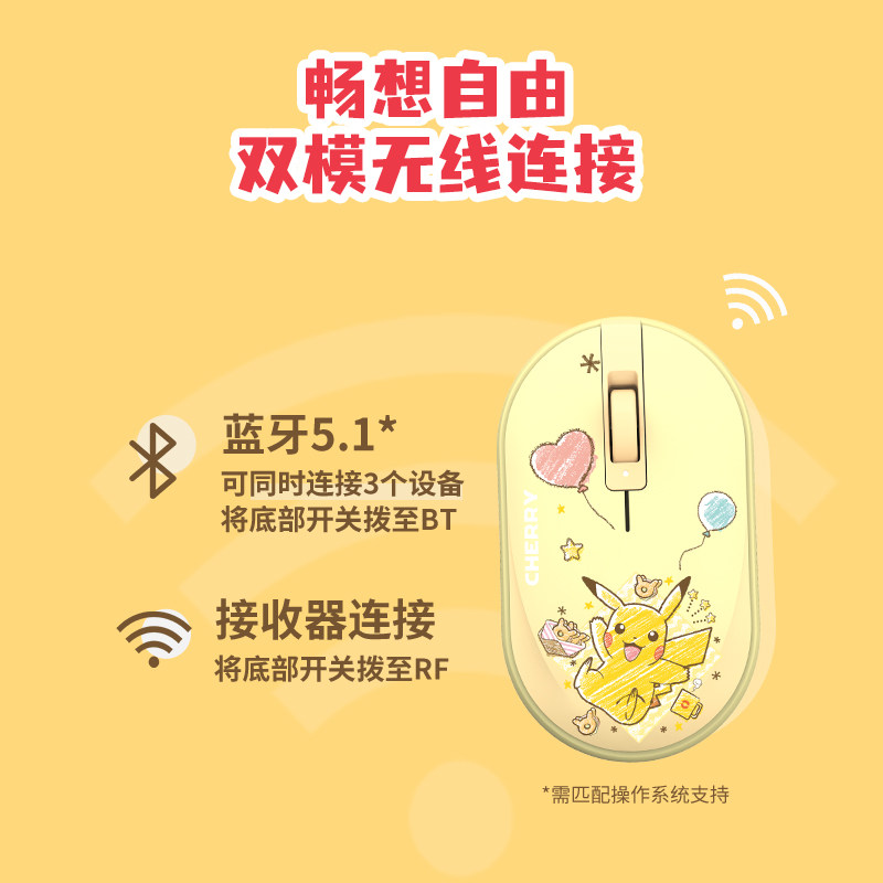 CHERRY樱桃MW5180宝可梦联名款皮卡丘无线蓝牙鼠标轻音办公女家用