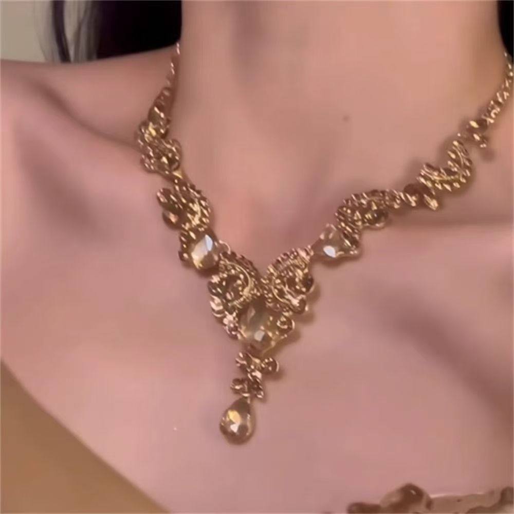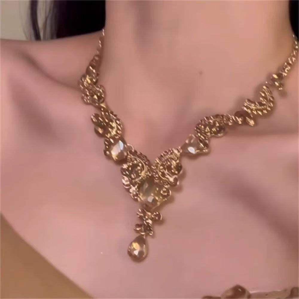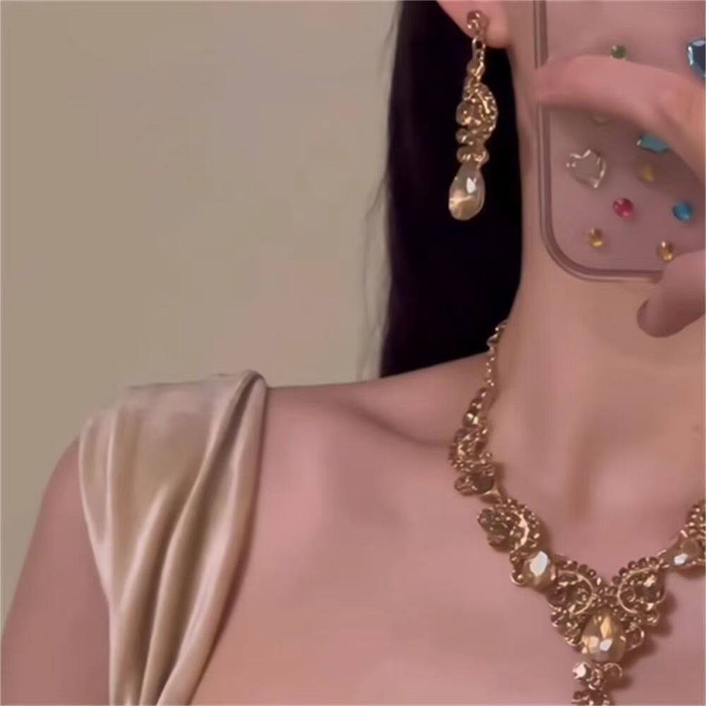 zoozmomo欧美夸张香槟色水滴流苏闪钻项链耳环女新娘首饰礼服配饰