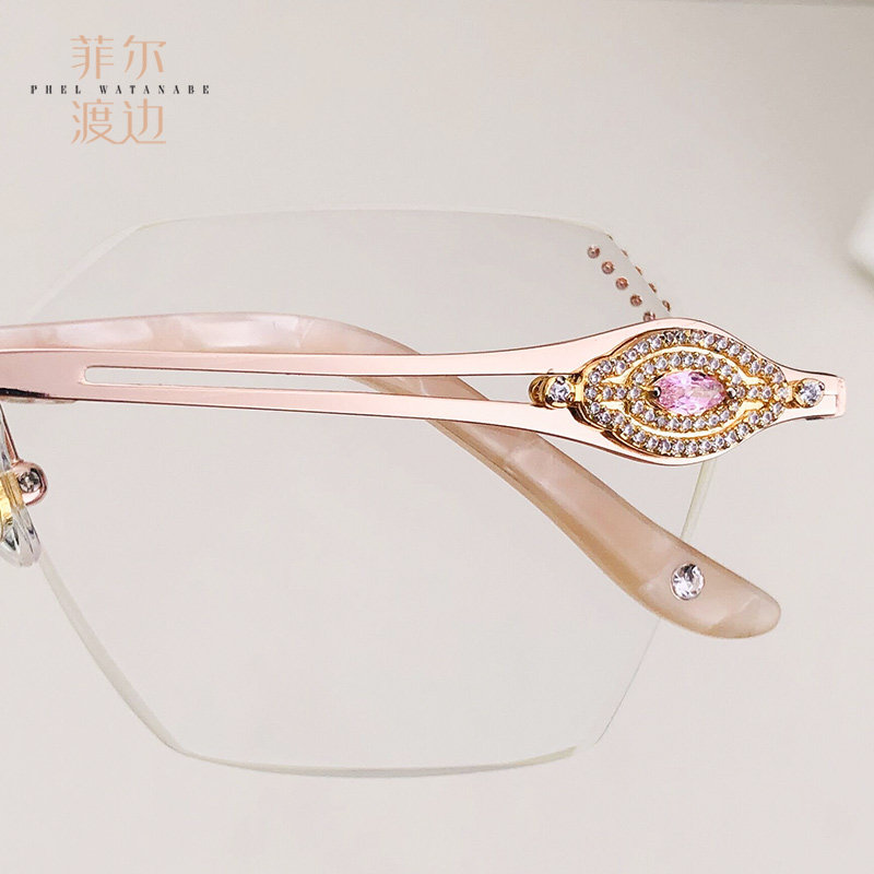 菲尔渡边无框切边近视眼镜框美妆素颜大框女多边形纯欲时尚58035