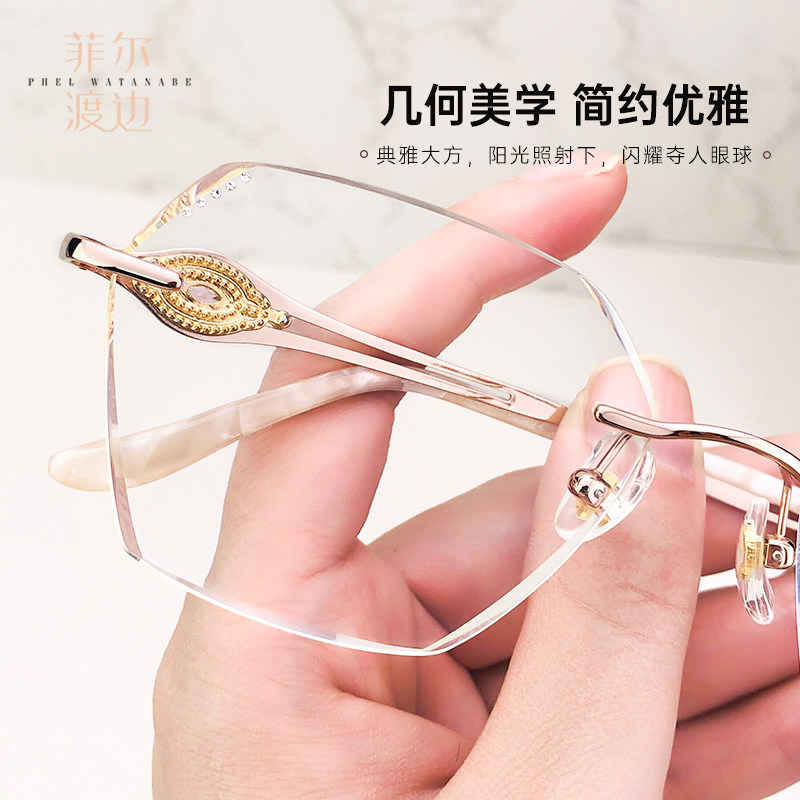 目戏无框眼镜女近视可配度数可选蔡司镜片无边框眼镜框镜架23006