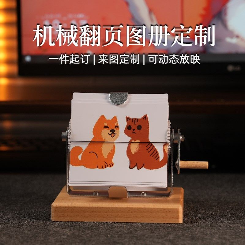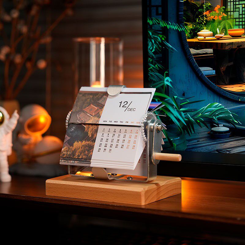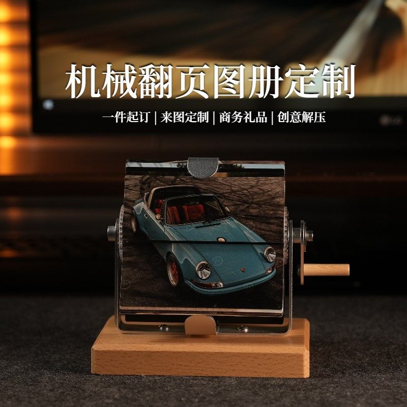 复古桌面摆件机械手摇实木翻页翻转日历台历宣传相册企业定制创意
