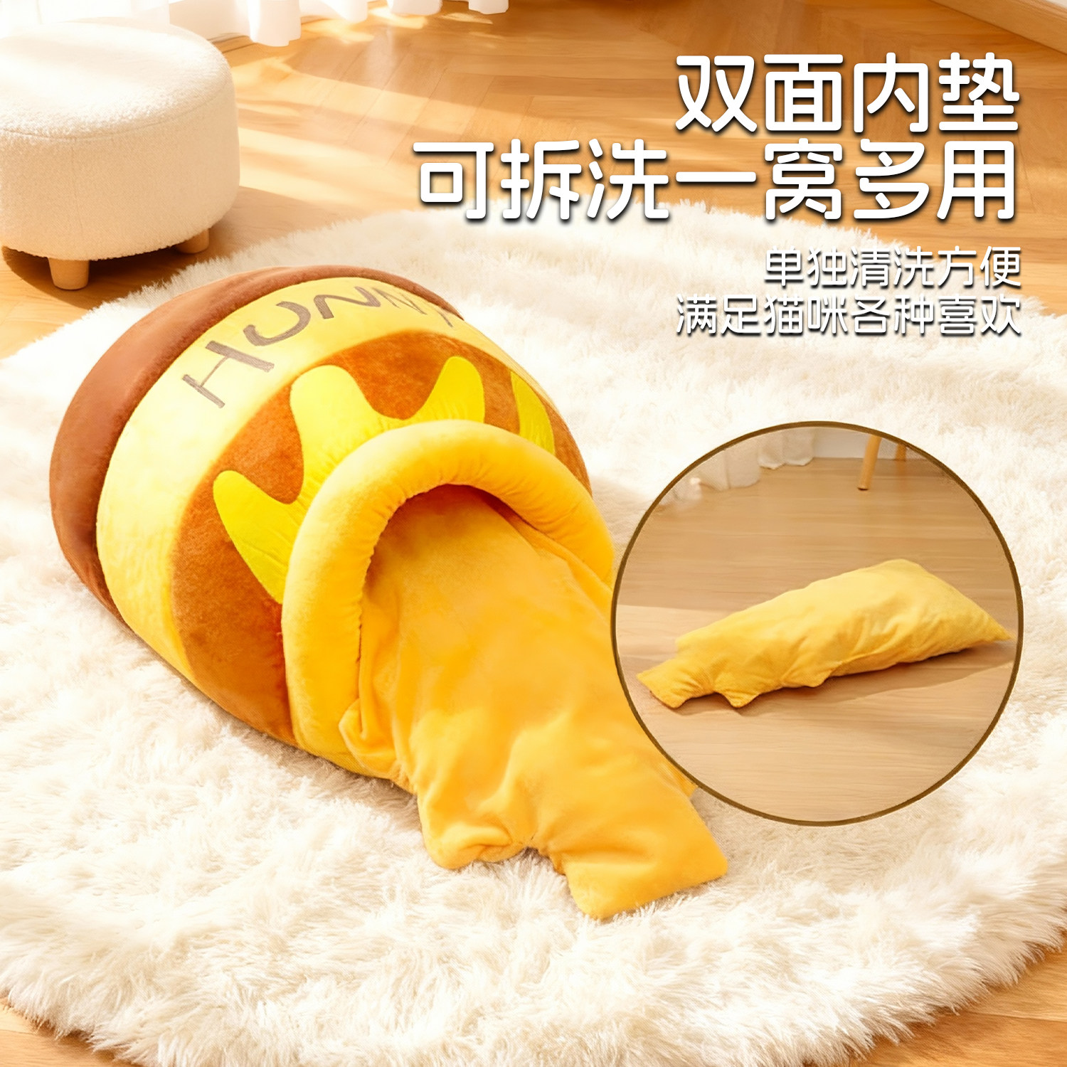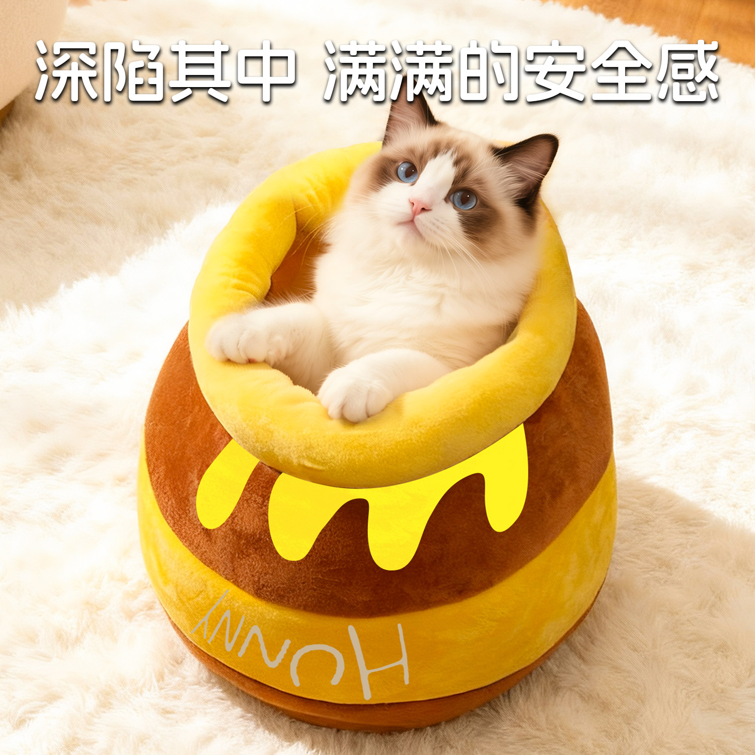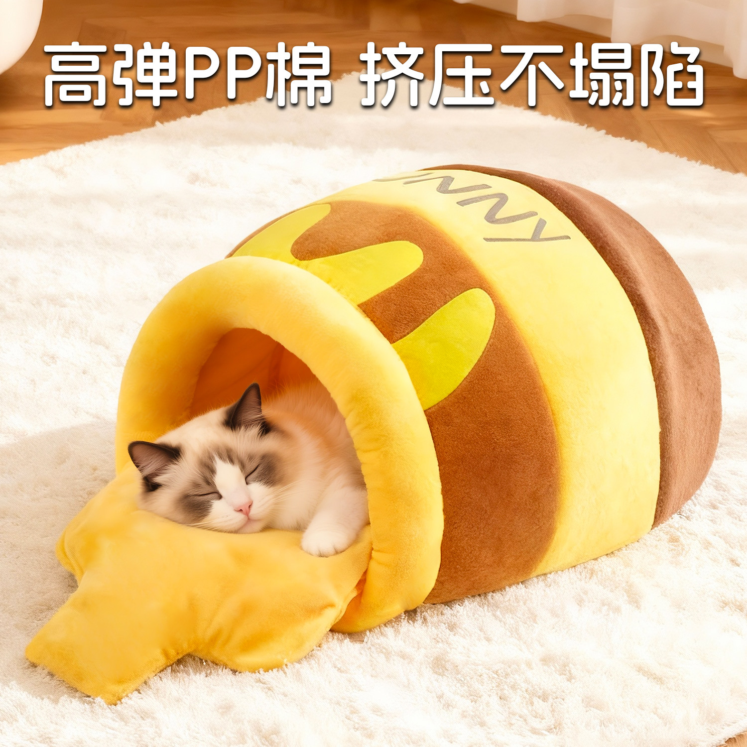 猫窝冬季保暖猫睡袋蜜罐小猫睡觉窝狗窝蜂蜜室内安全感御寒超大