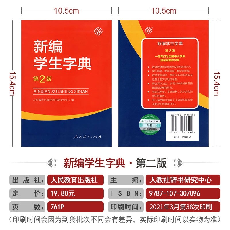 正版包邮第2版新编学生字典人教版教育出版社辞书研究中心编第二版人教社工具书小中学生新华书店词语汉字双色人民