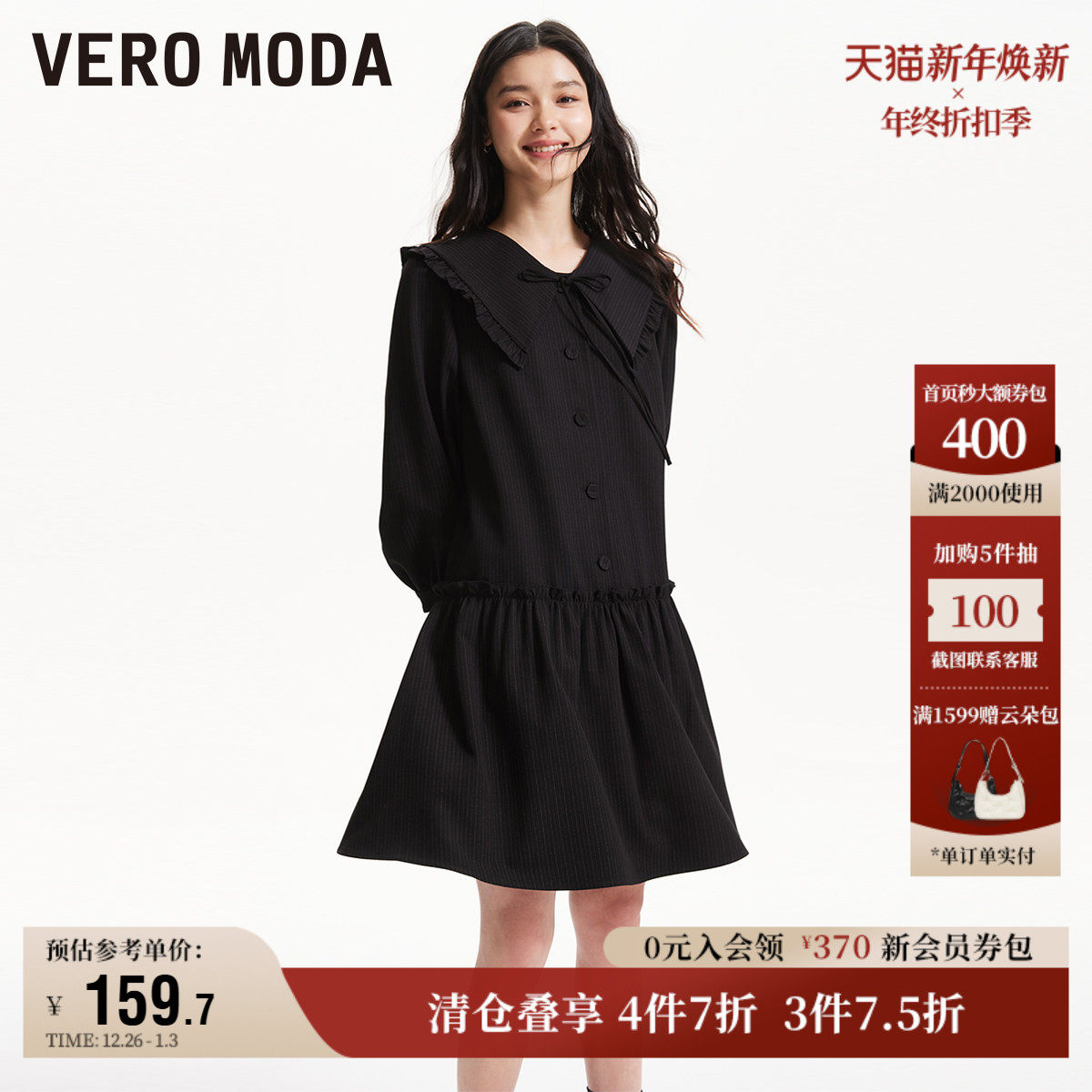 Vero Moda奥莱连衣裙秋季新款优雅减龄七分袖海军领宽松裙子流行