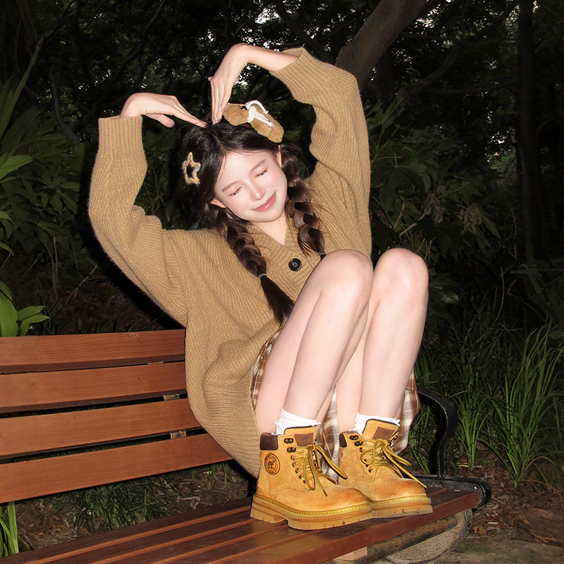 骆驼马丁靴女鞋秋冬厚底增高英伦风工装靴大黄靴女登山鞋短靴子女