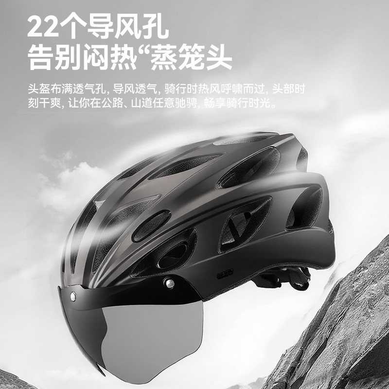 自行车头盔带风镜一体成型大头围男女山地公路车安全帽骑行装备