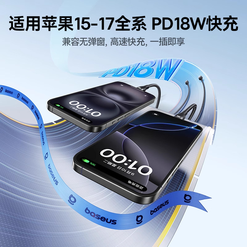 倍思适用苹果17充电线iphone16车载usb转typec快充车充promax安卓数据线专用华为100W超级快充15手机6A平板