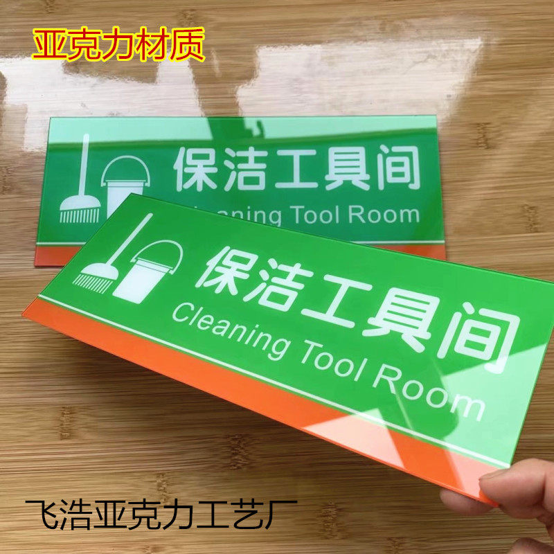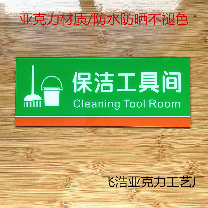 清洁用品放置处标识亚克力标志酒店保洁工具间卫生间拖把池提示牌
