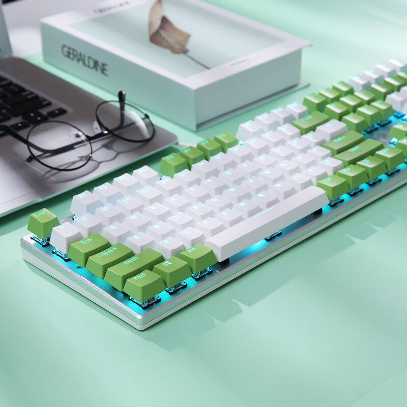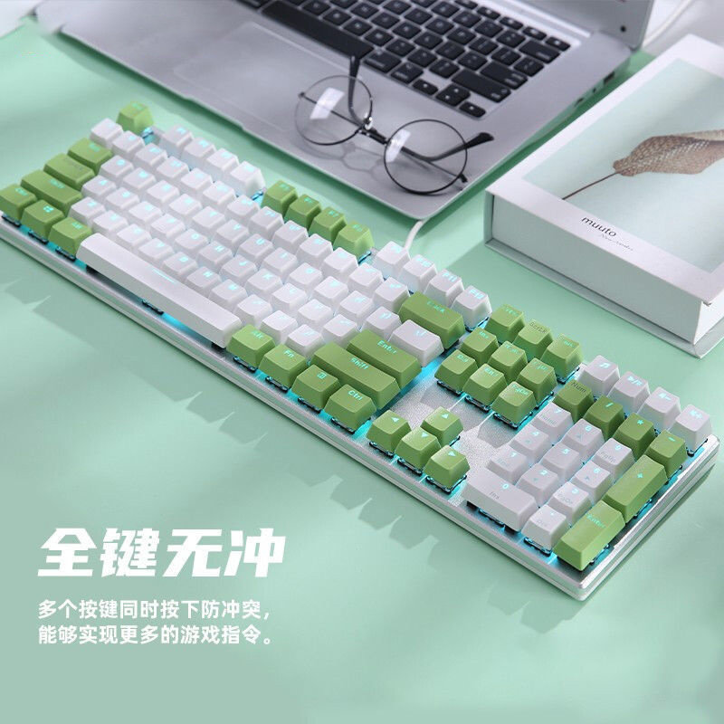 达尔优牧马人EK815薄荷绿有线游戏办公机械键盘电脑青黑轴电竞LOL