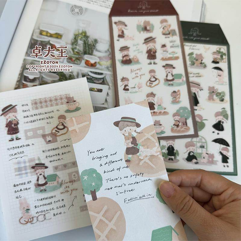 卓大王阿卓水彩风贴纸 雾面pvc防水盐系日系文艺手帐装饰日记