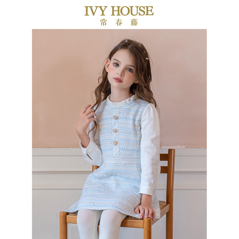 IVY HOUSE常春藤儿童装女童2025秋季新款 小香风假两件连衣裙亲子