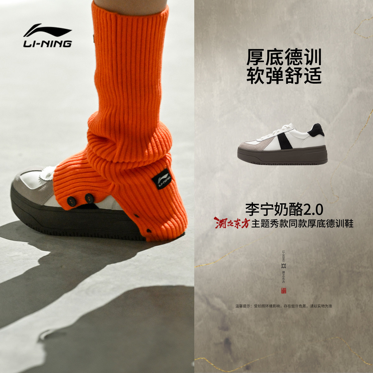 李宁奶酪2.0丨 板鞋女秋冬增高厚底休闲鞋舒适软弹运动鞋德训鞋女