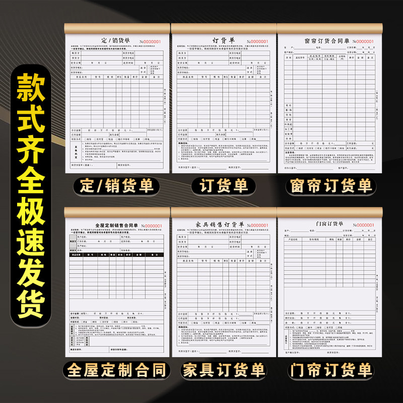 全屋定制合同三联订单开票本厨柜定购单据柜子定单三连订货单3联