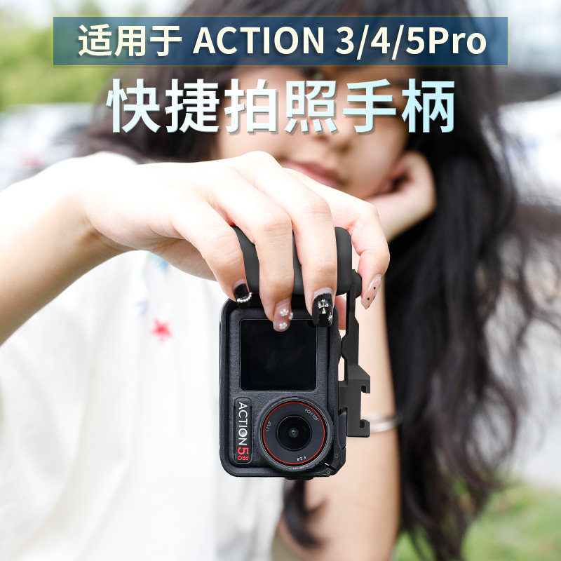 kvsotbot适用大疆action5pro街拍手柄action4手持配件action3自拍手柄街拍套装补光灯