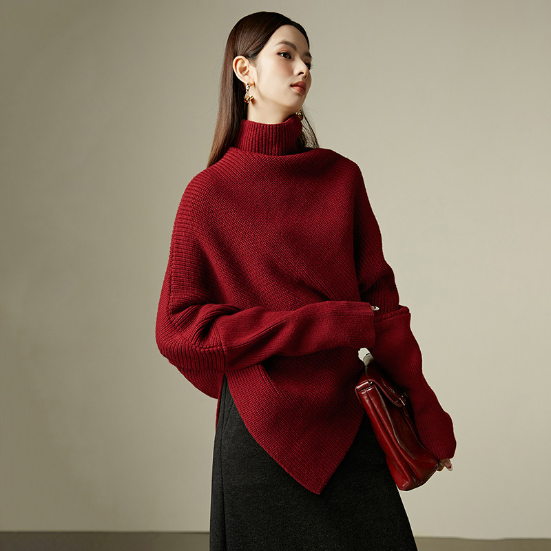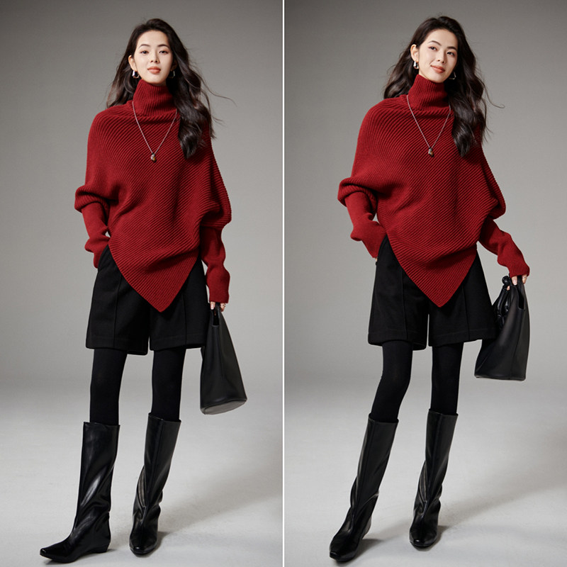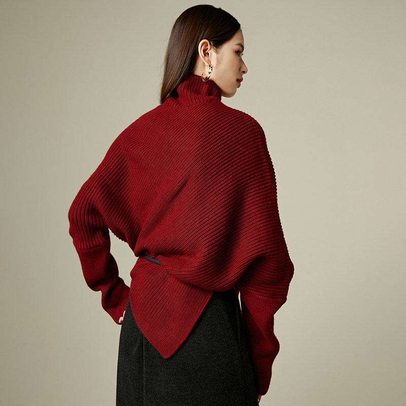 晚白秋冬设计感气质上衣大码厚款新年红色含羊毛针织衫【无腰带】