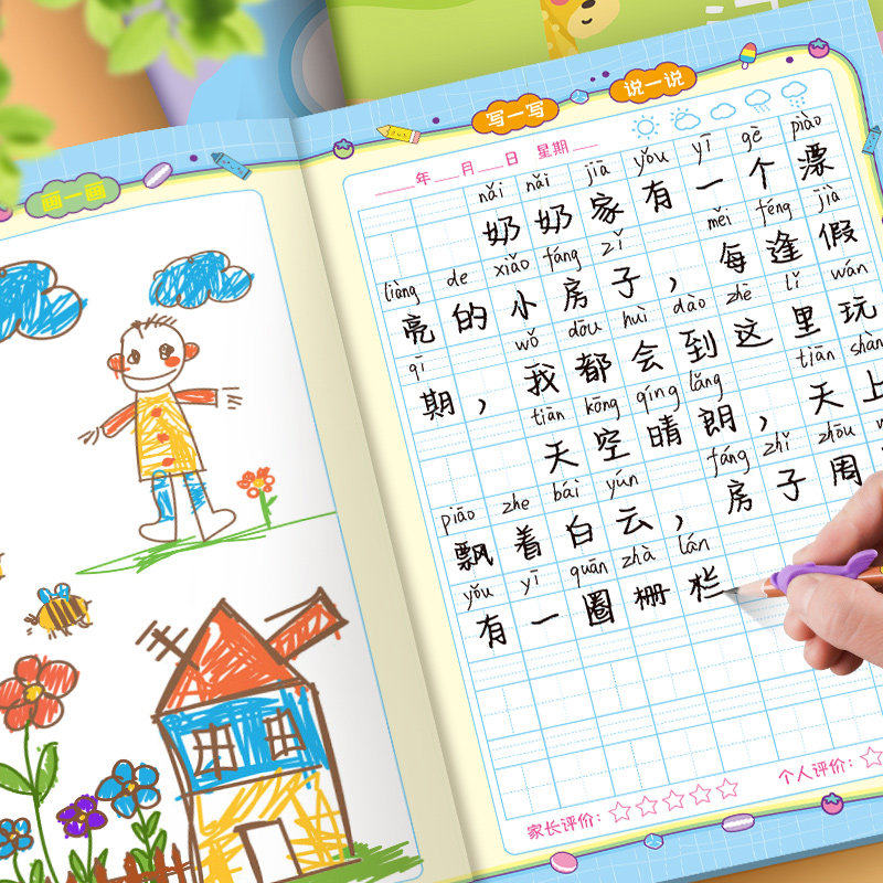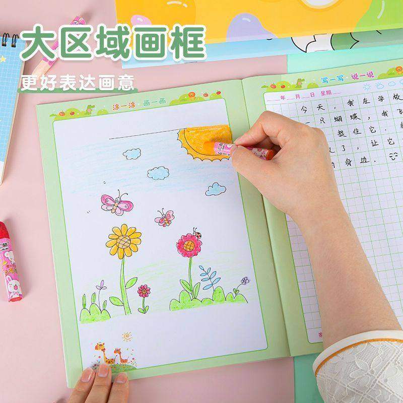 绘画日记本小学生一年级二年级幼儿园儿童看图写话本子拼音田字格周记本男孩画画日记少儿画图写话本新款a5b5