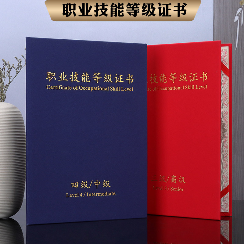 职业技能等级证书封皮外壳定制人力资源保护套定做外套初级中级高级技师封面一二三四五级证书套制作A4内芯页