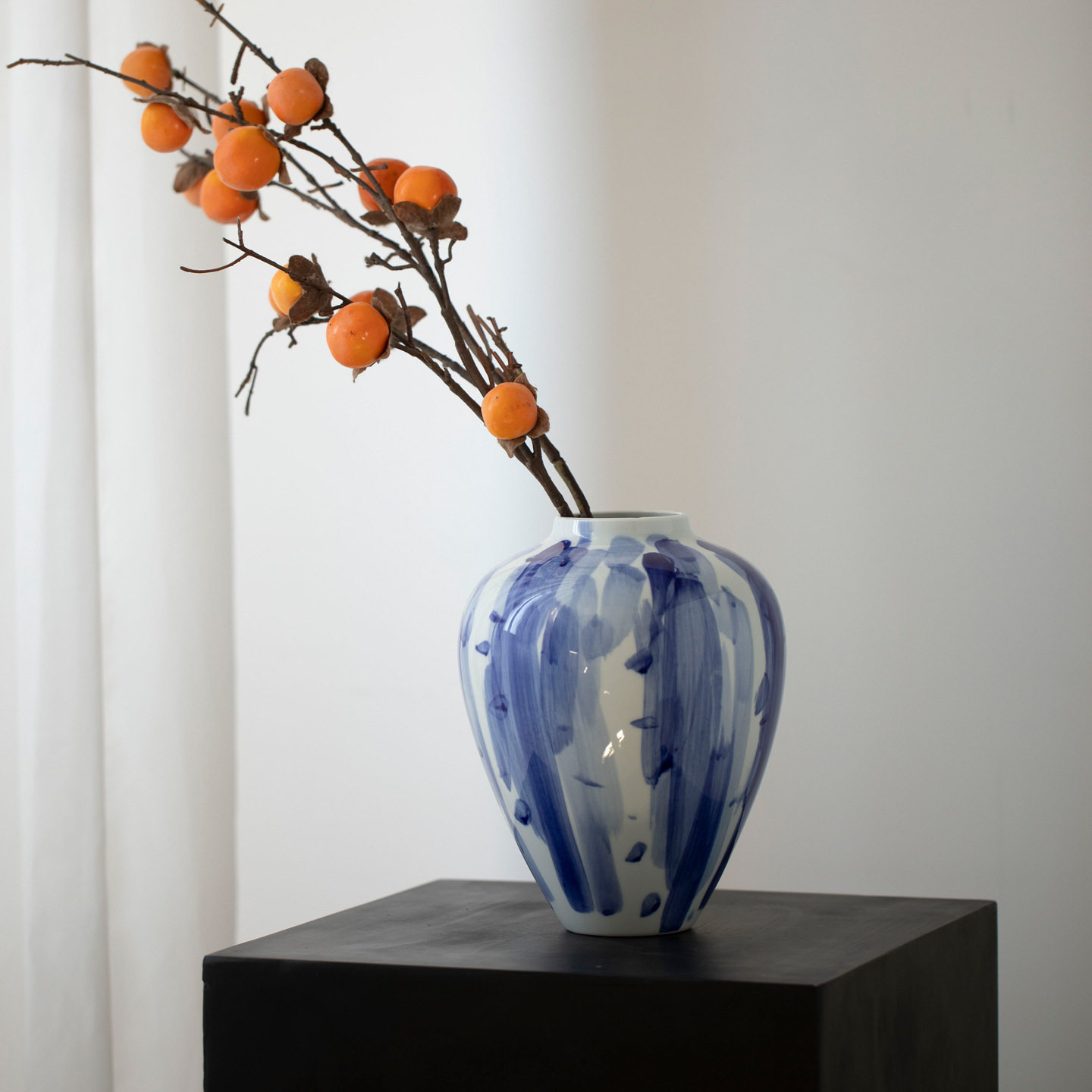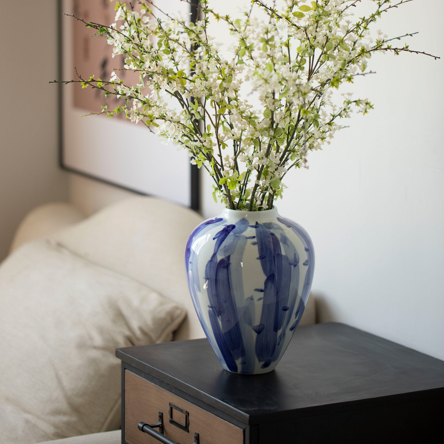 景德镇现代简约陶瓷花瓶亮面手绘青花摆件民宿酒店台面插花装饰品