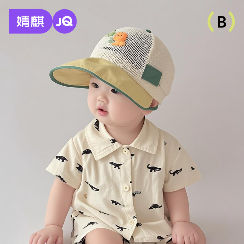 婧麒儿童防晒帽子夏季薄款透气网眼鸭舌帽男孩女宝宝婴儿遮阳帽潮