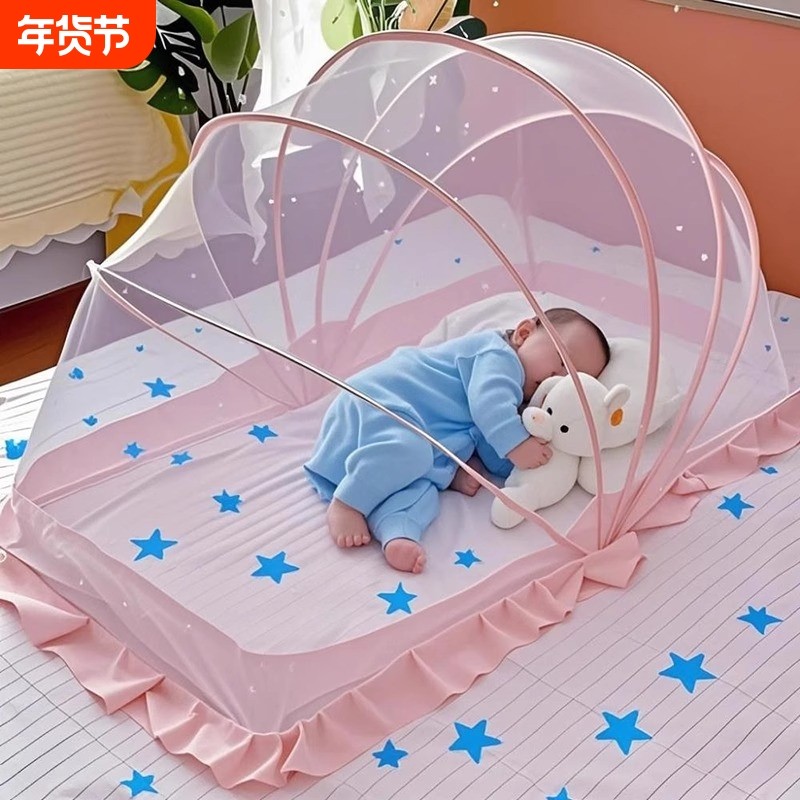 婴儿床蚊帐罩防蚊网可折叠新生儿童全罩式遮阳防蚊罩蚊帐通用婴童