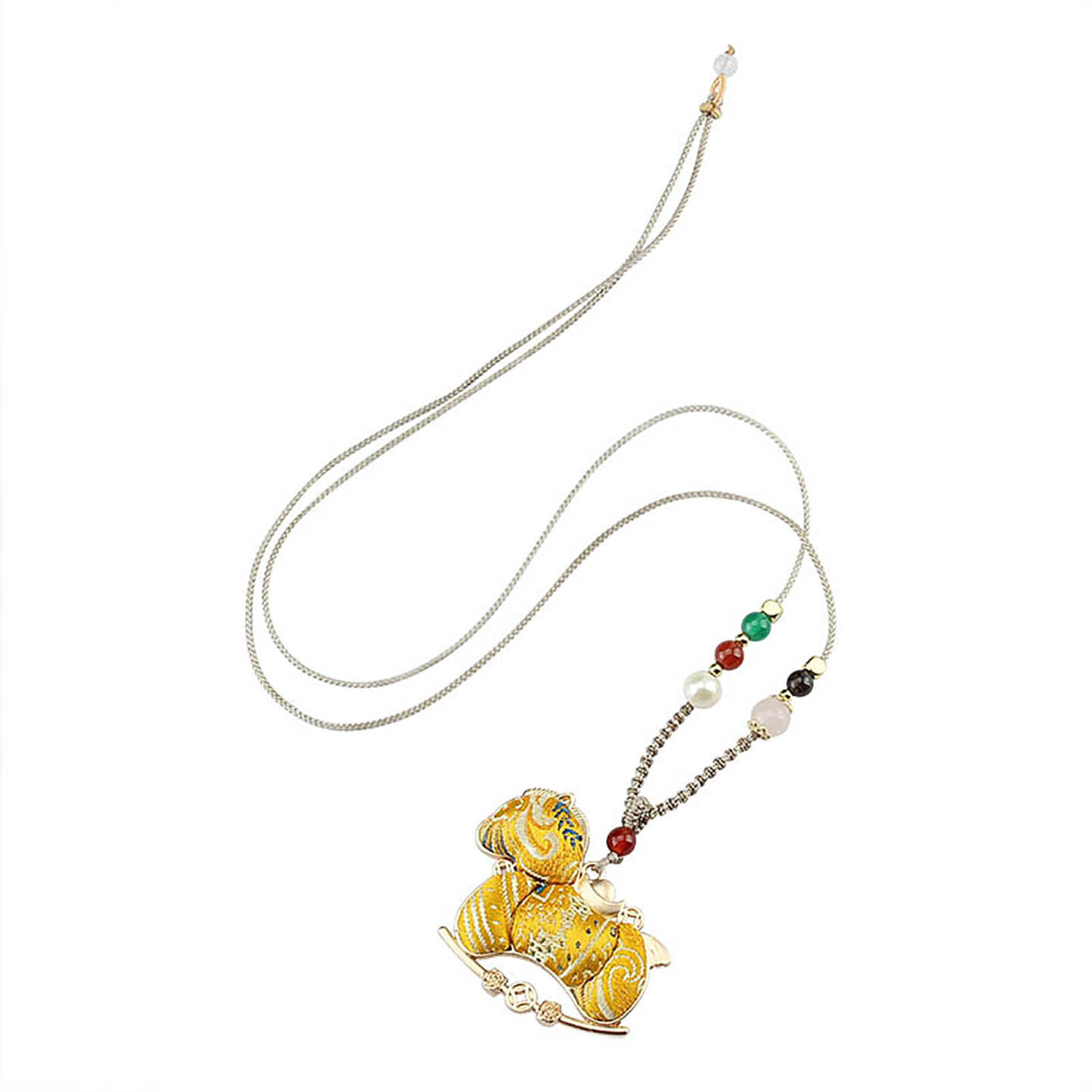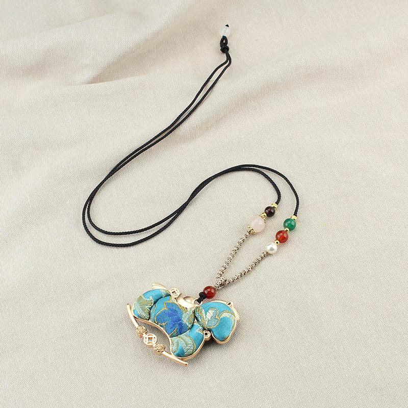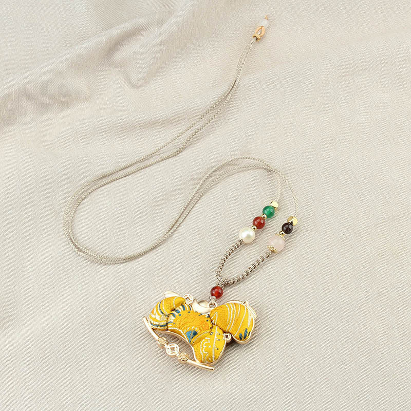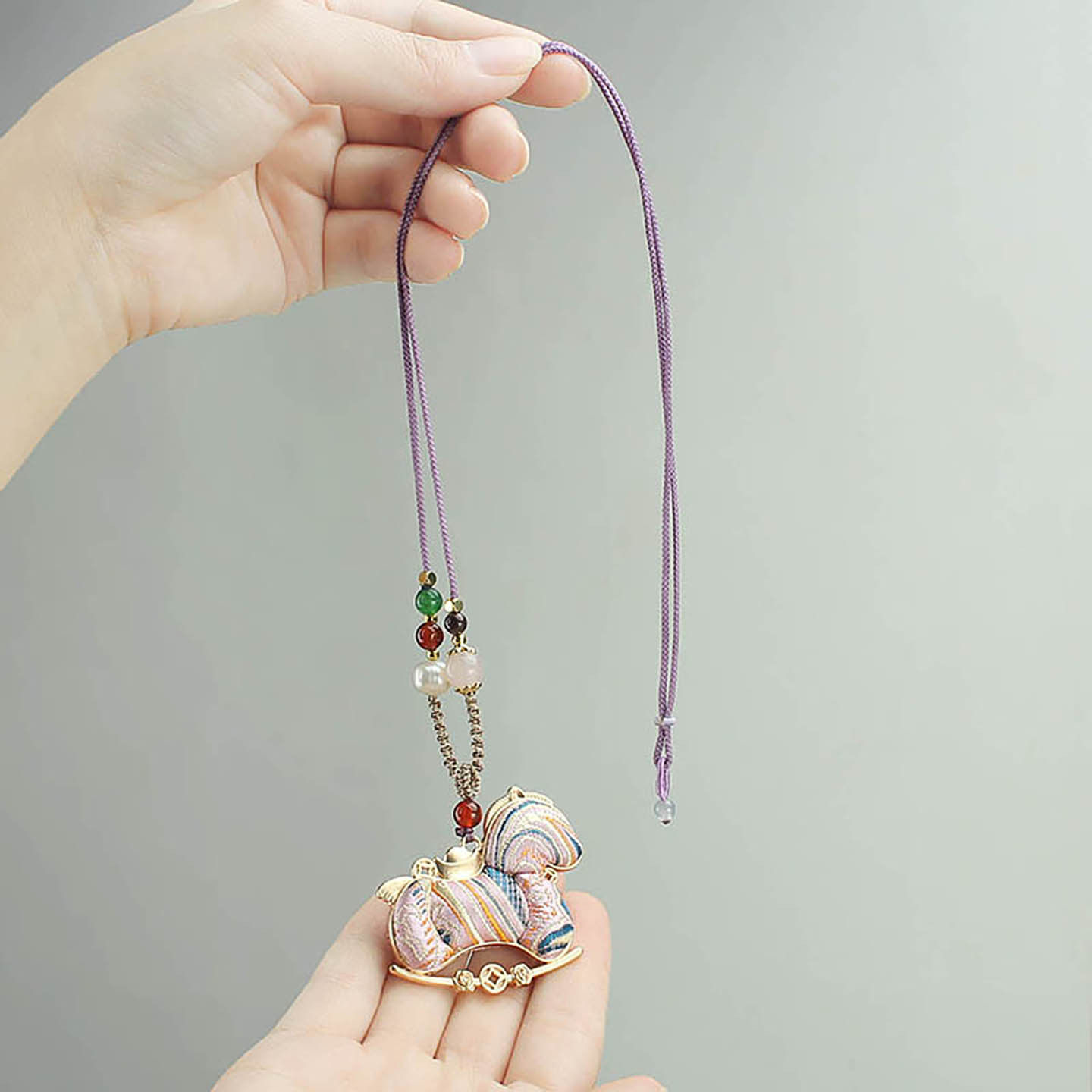 非遗仿宋锦双面小马吊坠项链新中式毛衣链马上有钱国风旗袍挂链