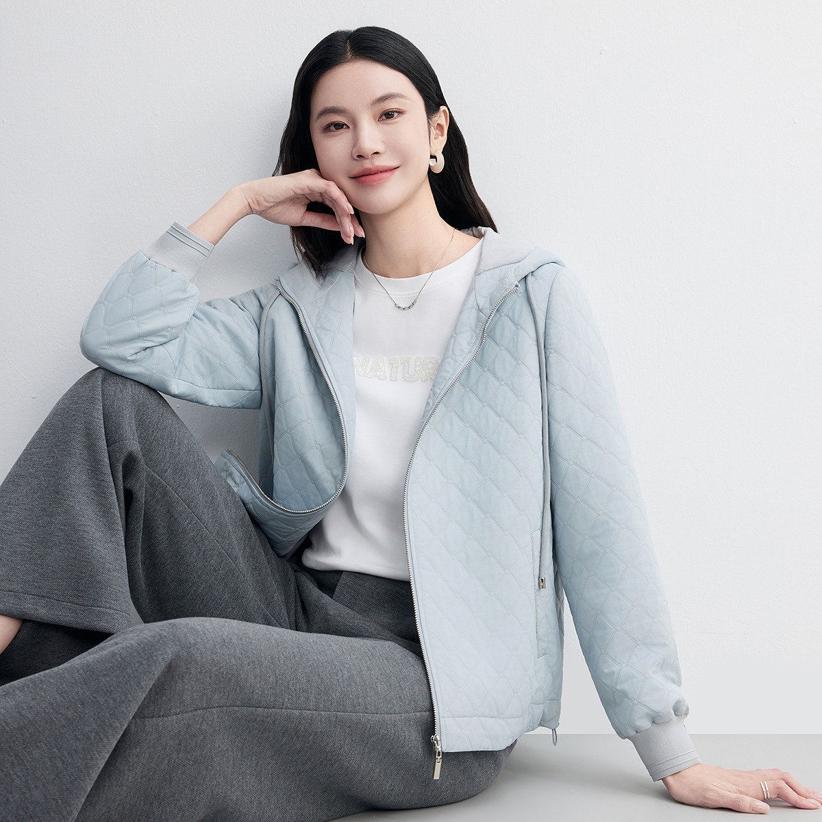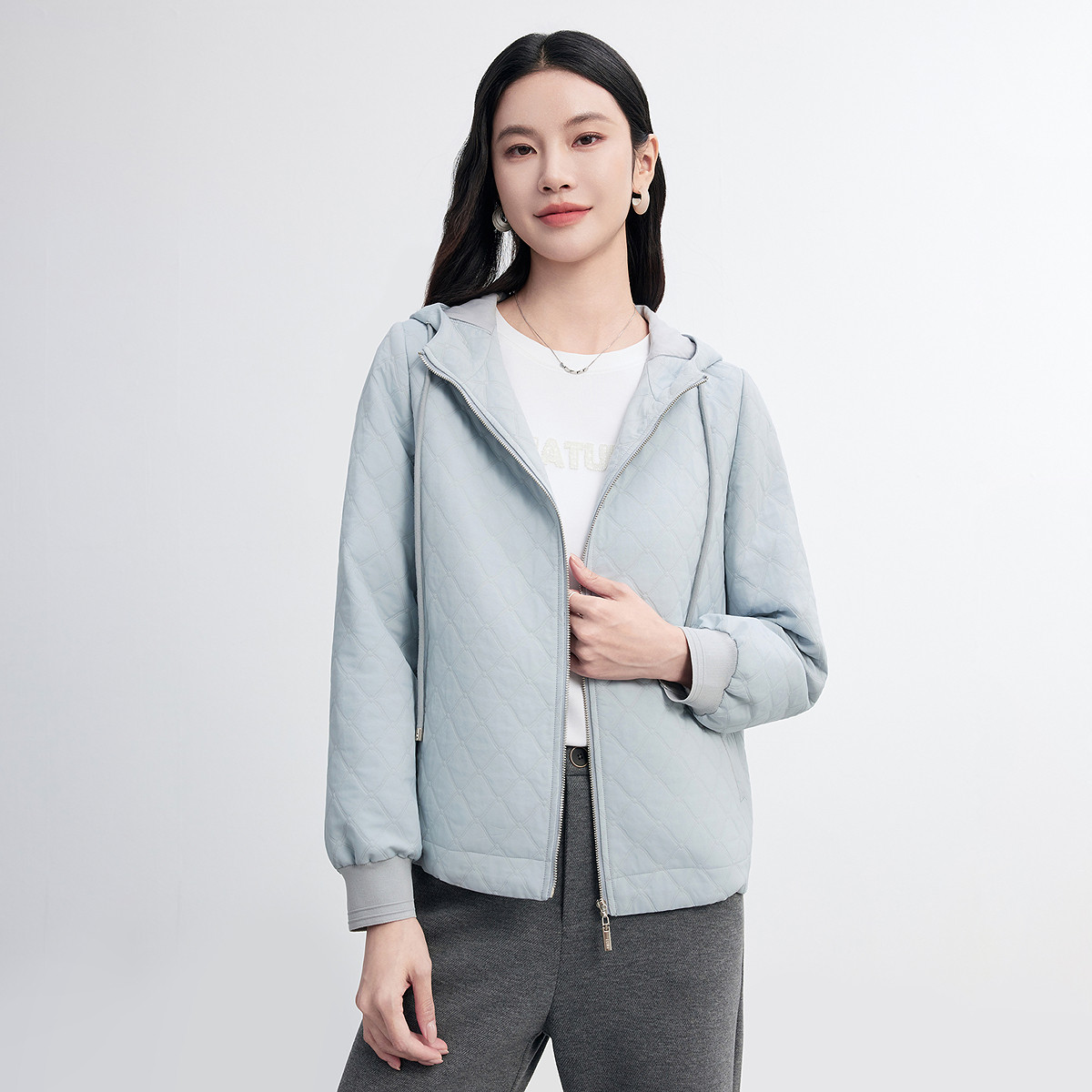 FINITY菲妮迪短外套2026春新款浅蓝色连帽菱形设计感短款上衣女装