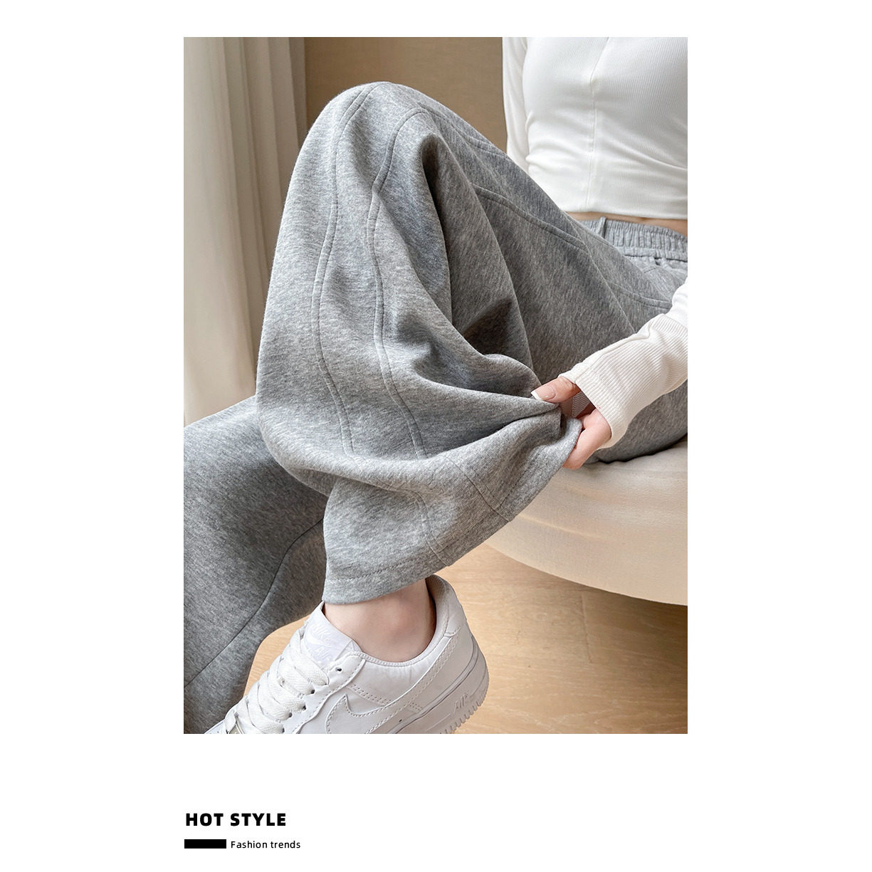 SIINSIIN加绒卫裤女2025新款阔腿运动裤休闲长裤冬季白色直筒裤子