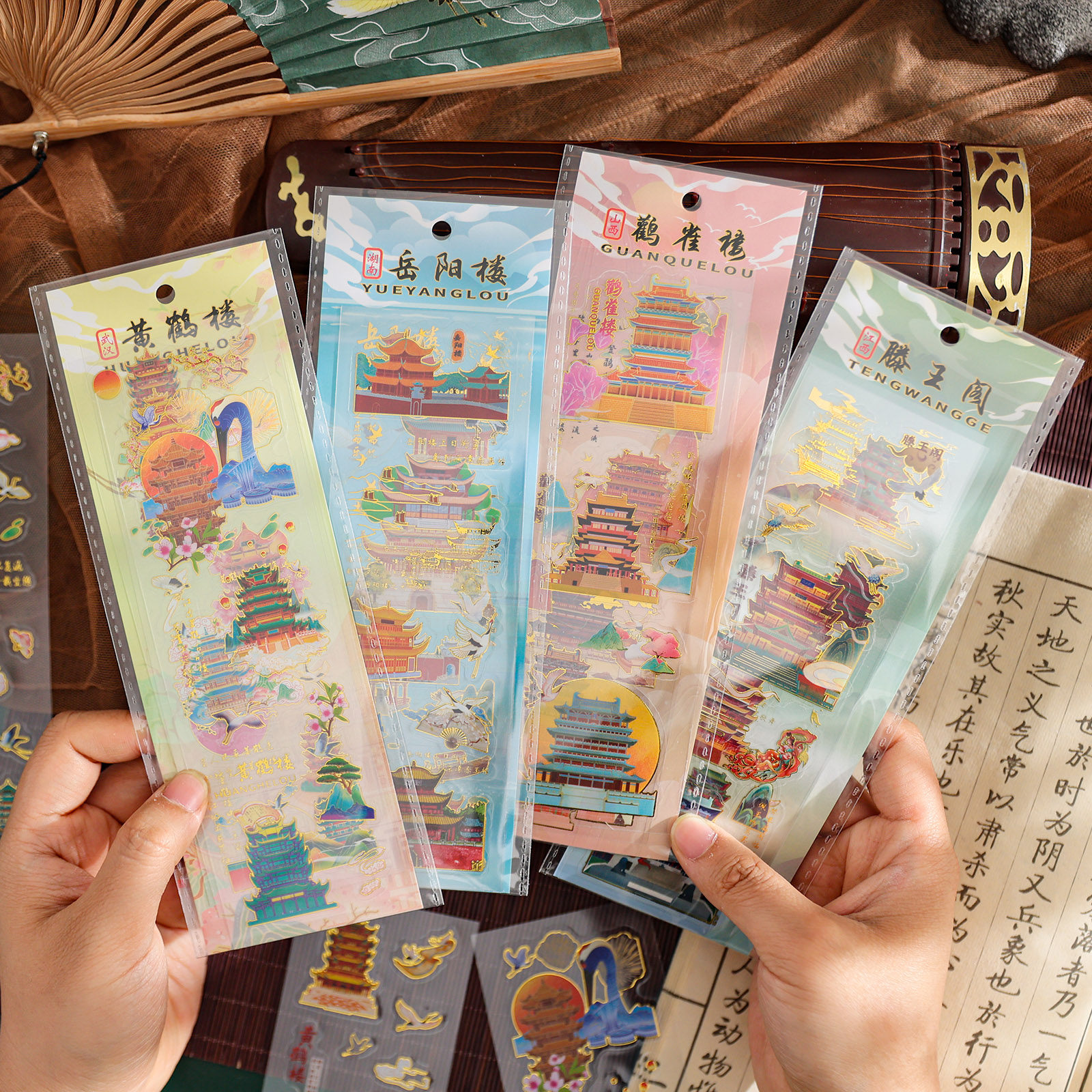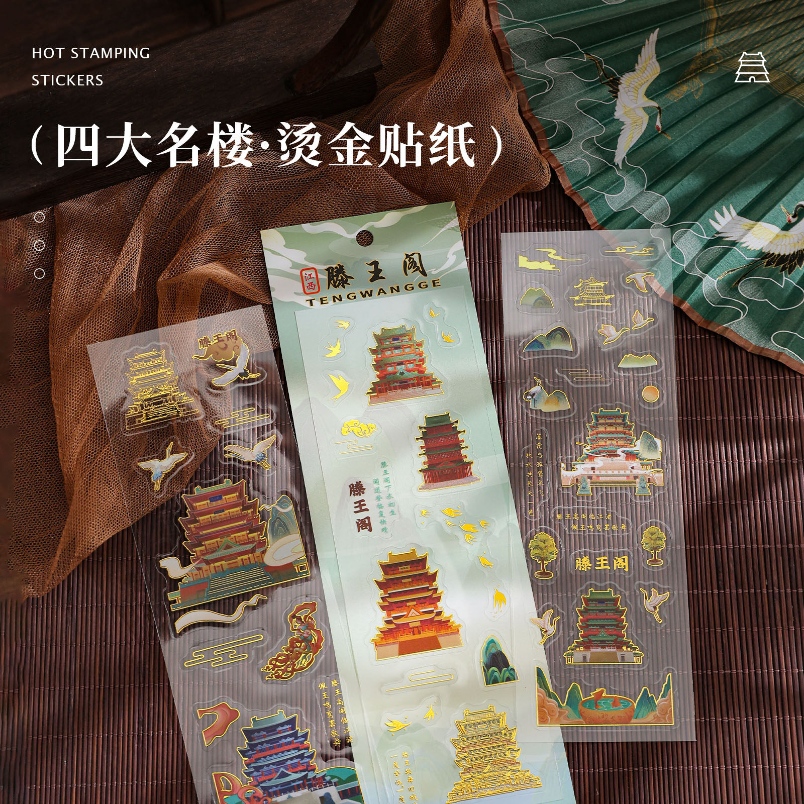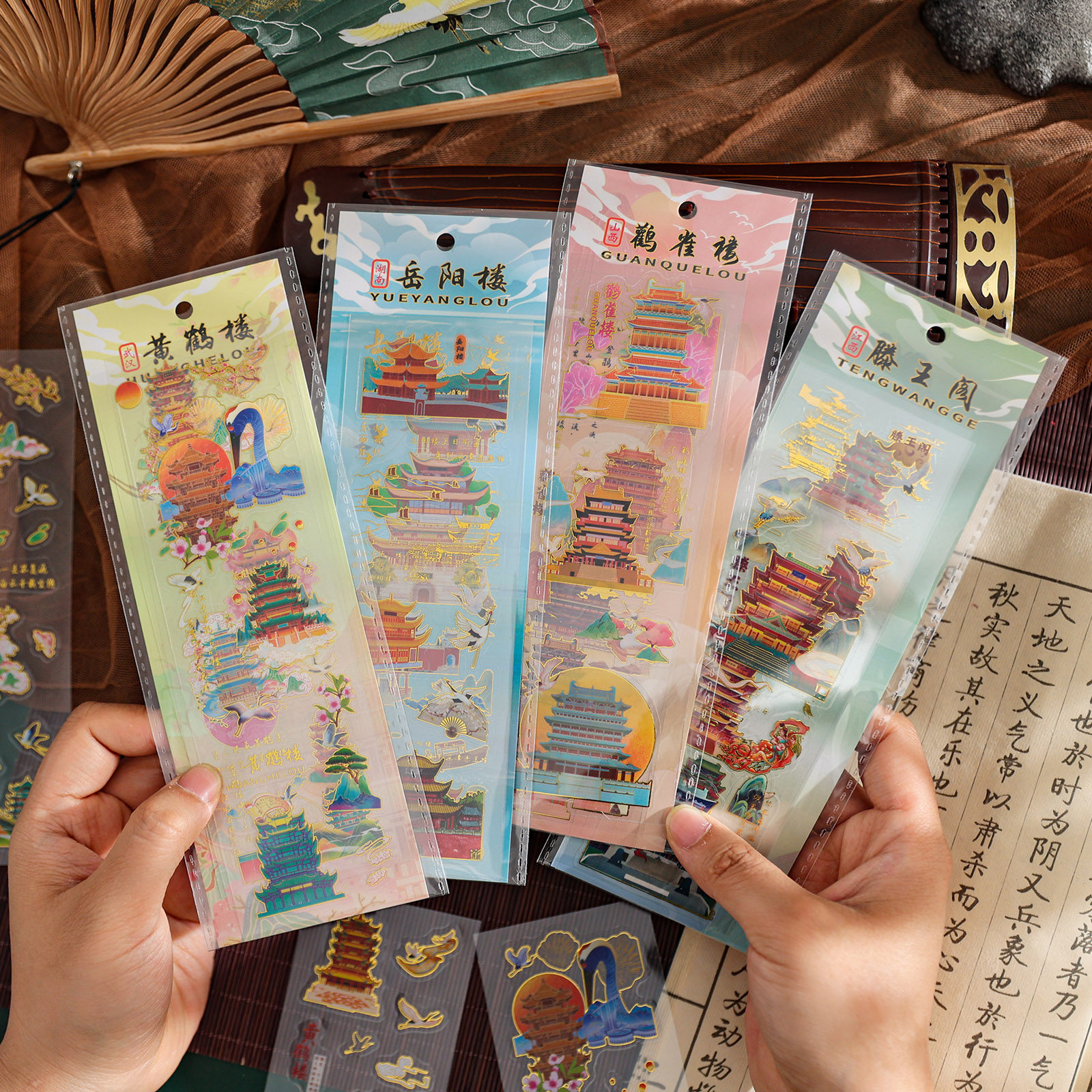 四大名楼黄鹤楼图案不重复手账贴纸儿童女孩贴画手帐长条贴纸国潮胶带diy小朋友装饰品学生用玩具手杖素材