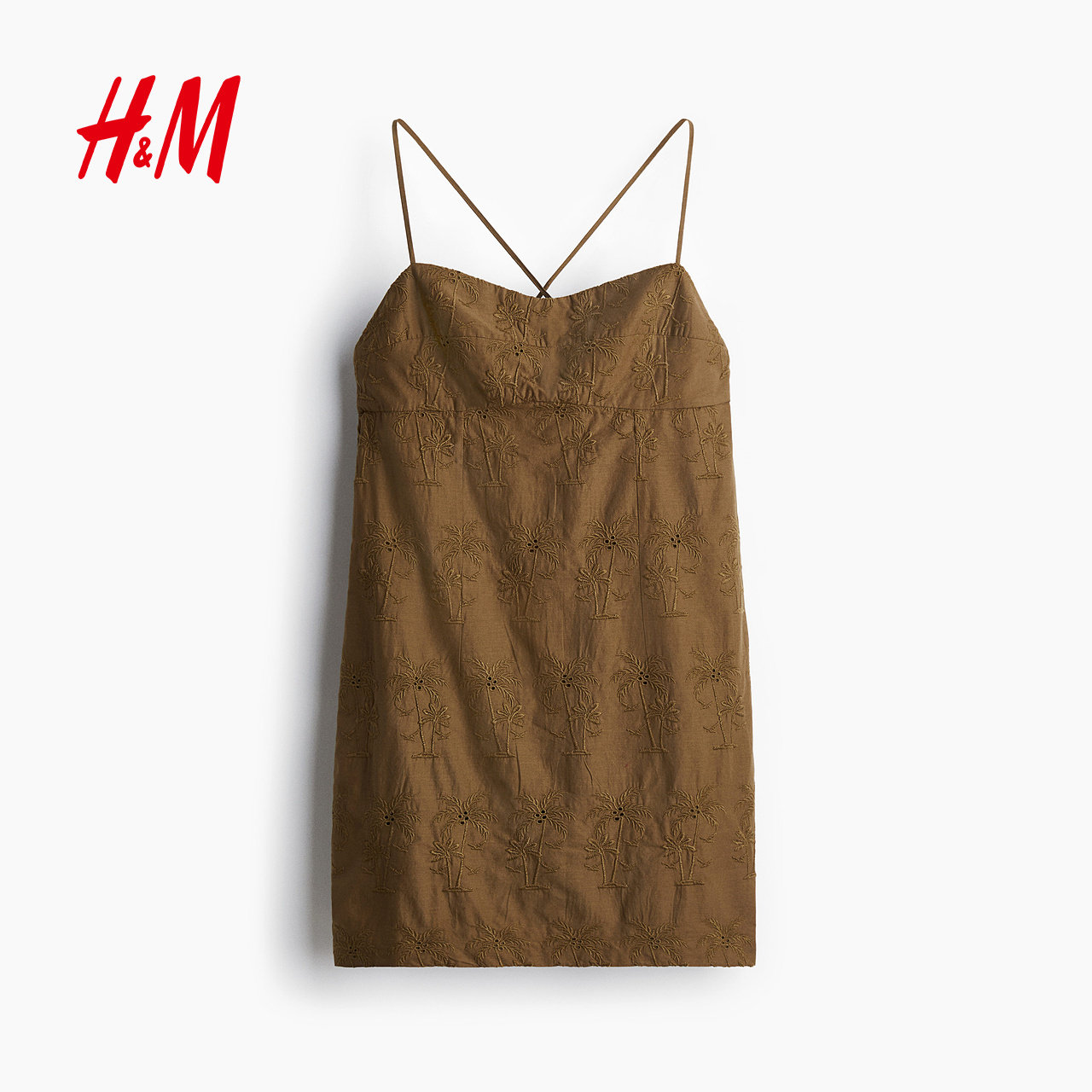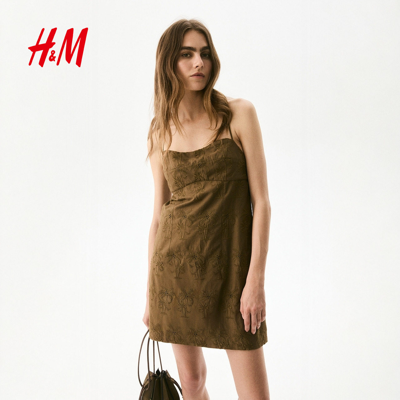 HM2025年冬季新款女装时尚休闲刺绣吊带连衣裙1293954