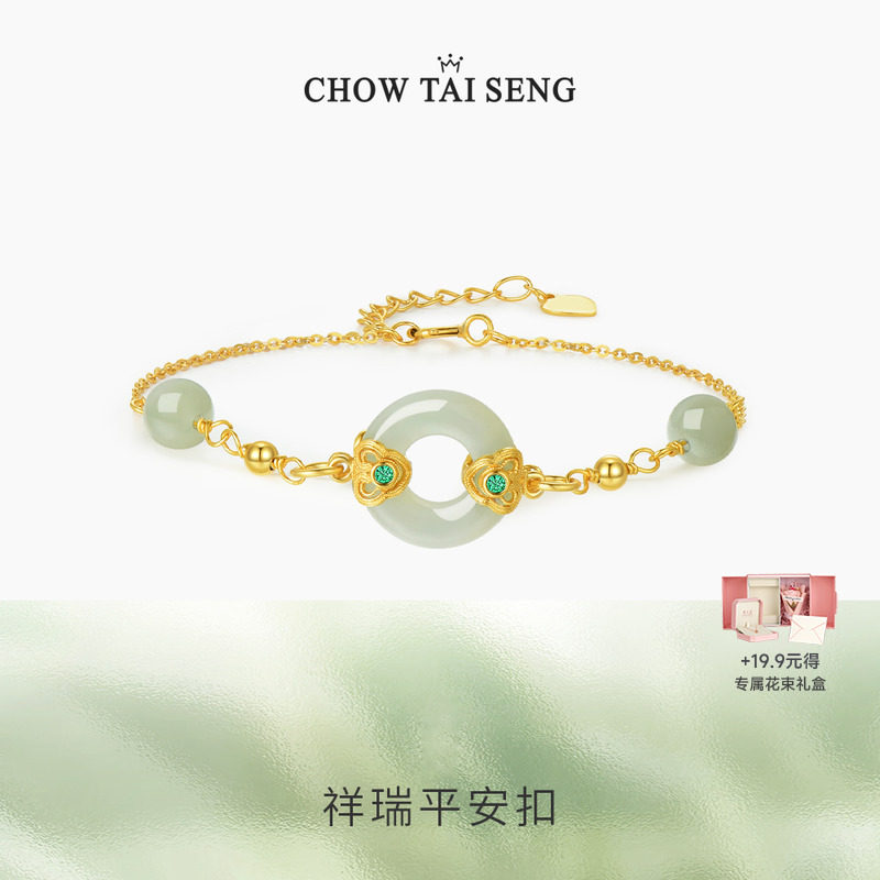 周大生平安扣和田玉银手链女款玉石新中式手串闺蜜生日礼物送女友