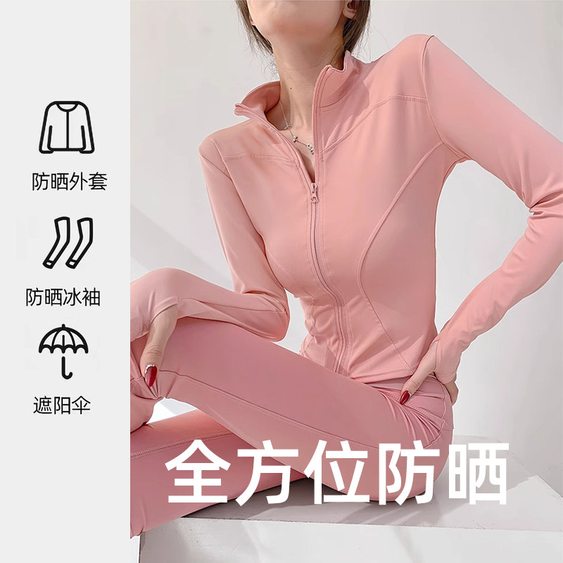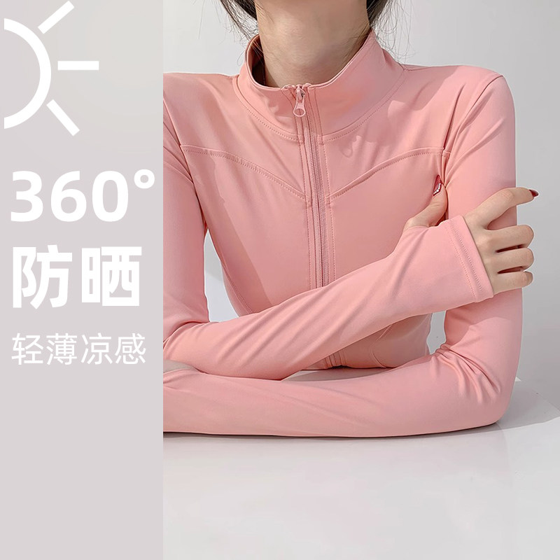 专业速干运动防晒外套女拉链长袖紧身跑步健身房上衣套装女瑜伽服