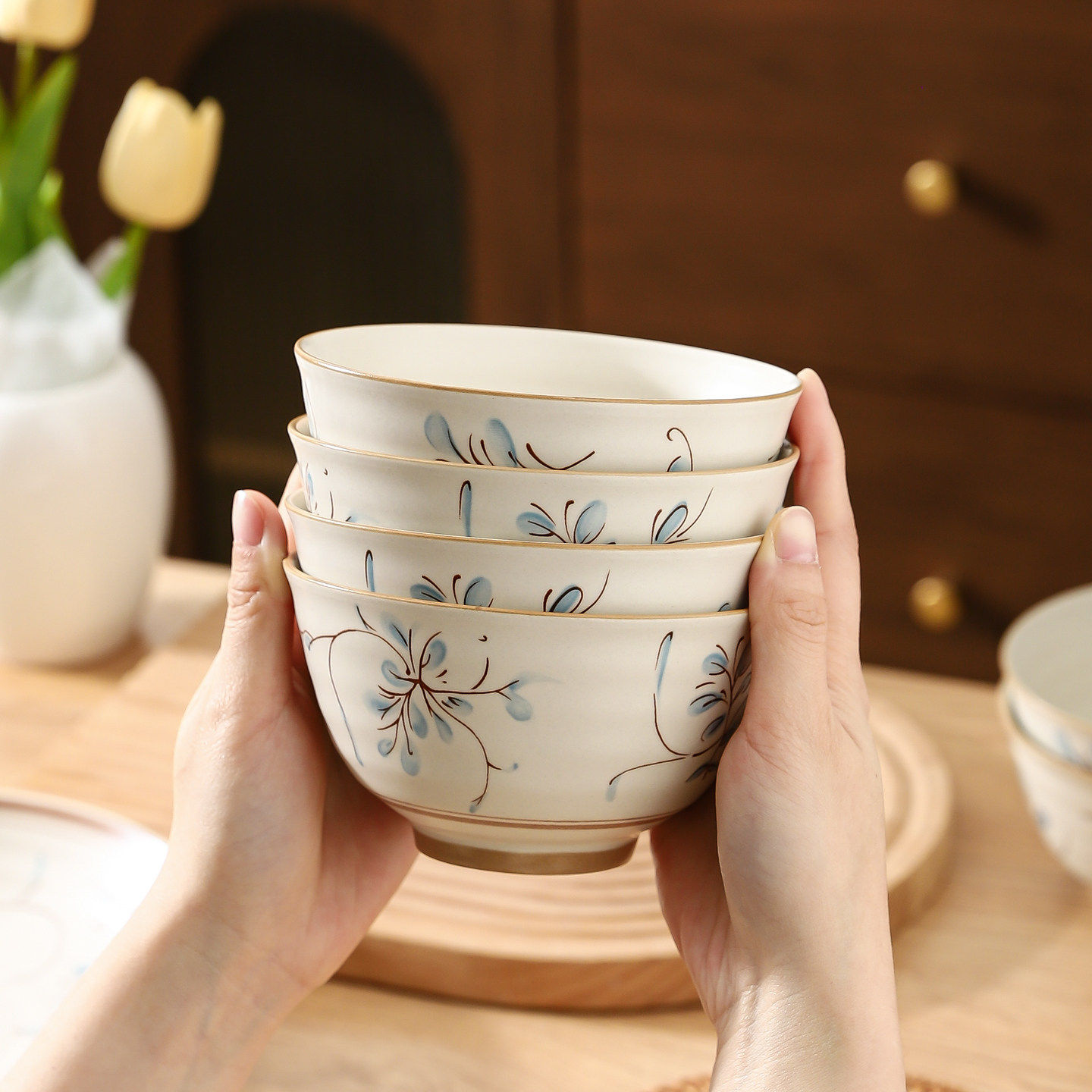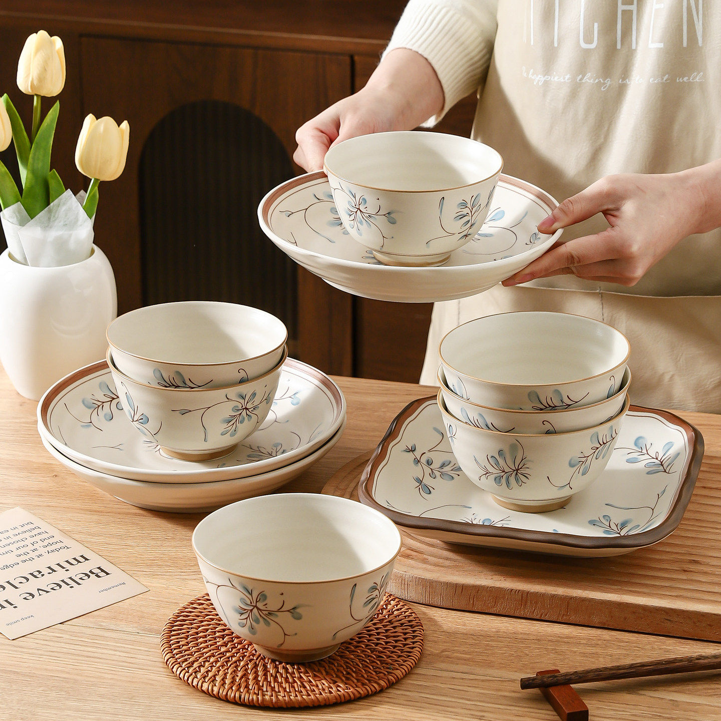 釉下彩陶瓷餐具套装家用2025新款碗碟盘子碗具日式乔迁新居碗盘筷