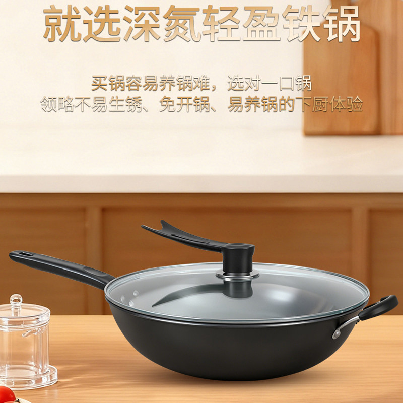 康巴赫有钛铁锅不粘锅无涂层炒锅家用炒菜锅电磁炉燃气专用锅子