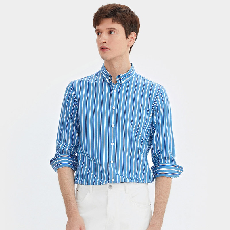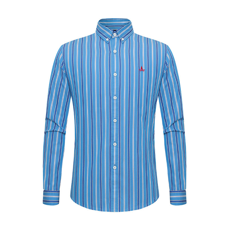 Navigare意大利小帆船春季休闲高级感衬衫男长袖蓝色纯棉条纹衬衣