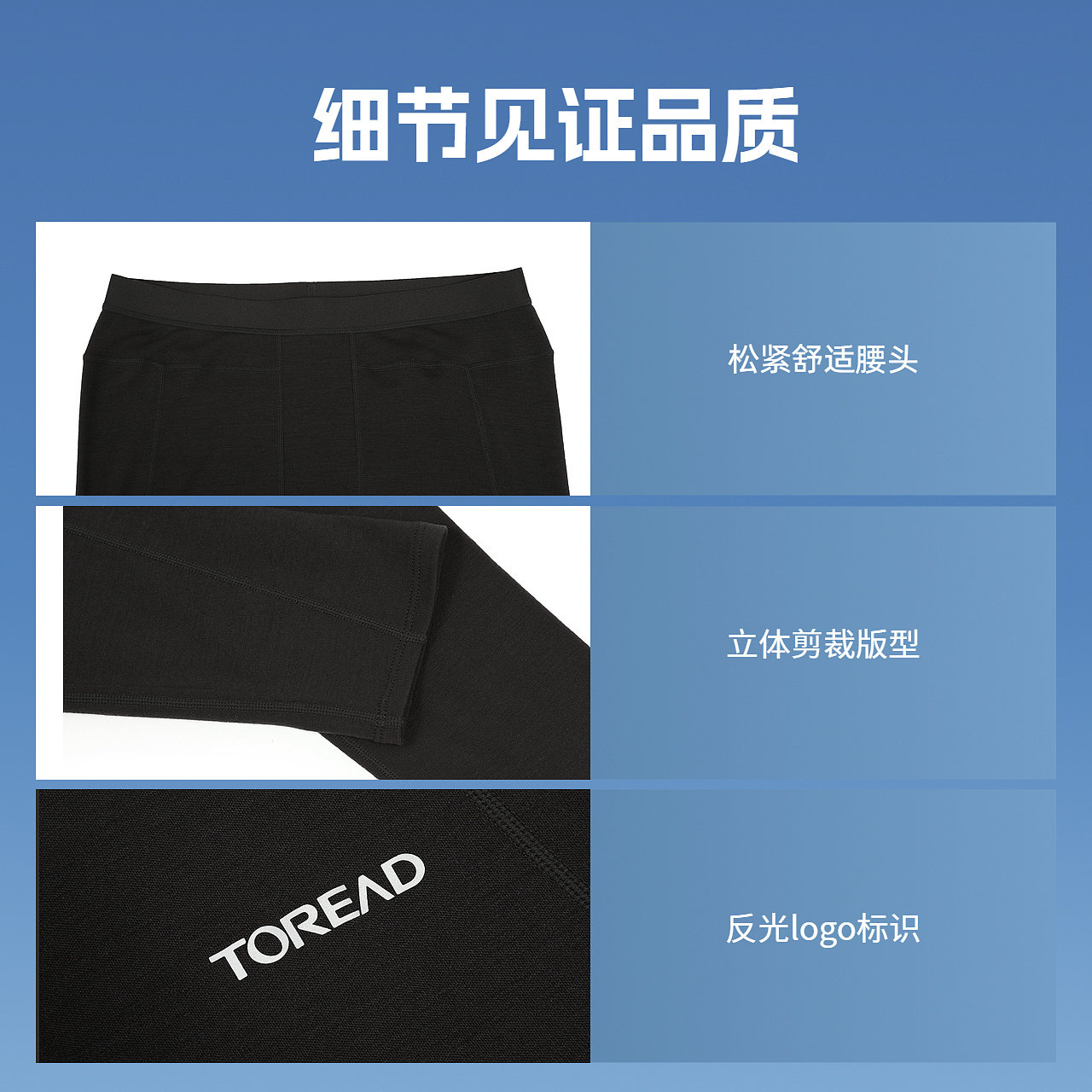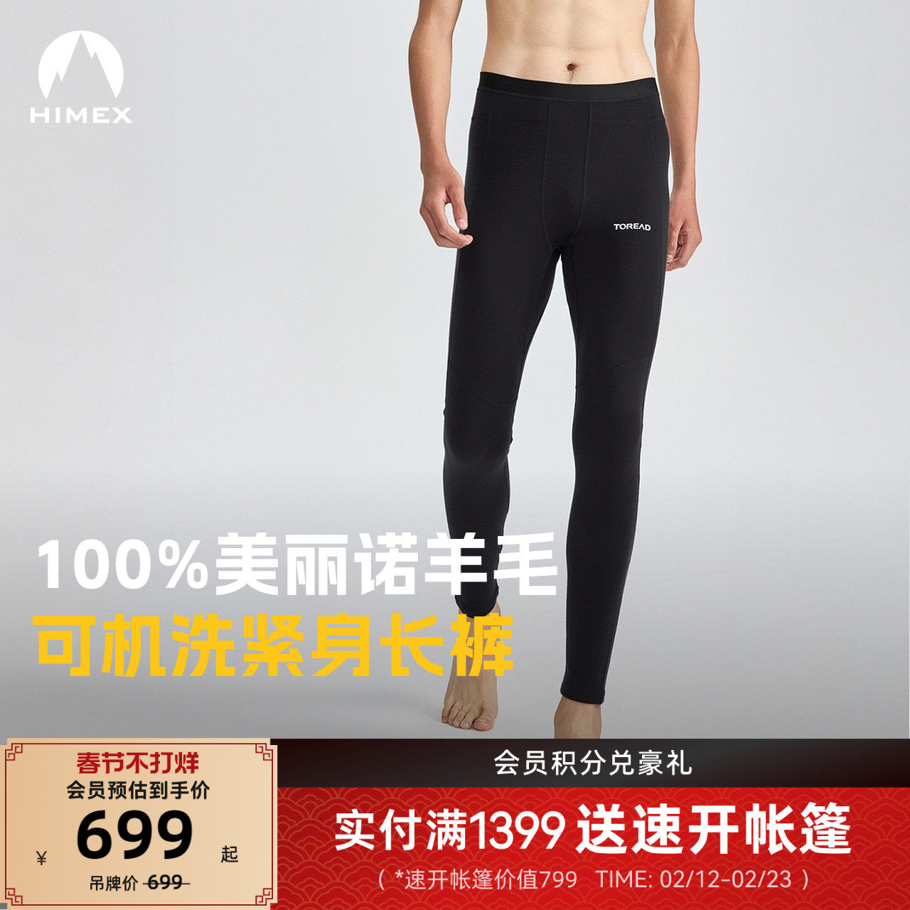 探路者打底裤商场同款男女户外运动透气弹力美丽诺羊毛紧身长裤