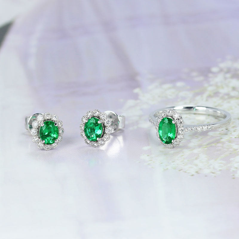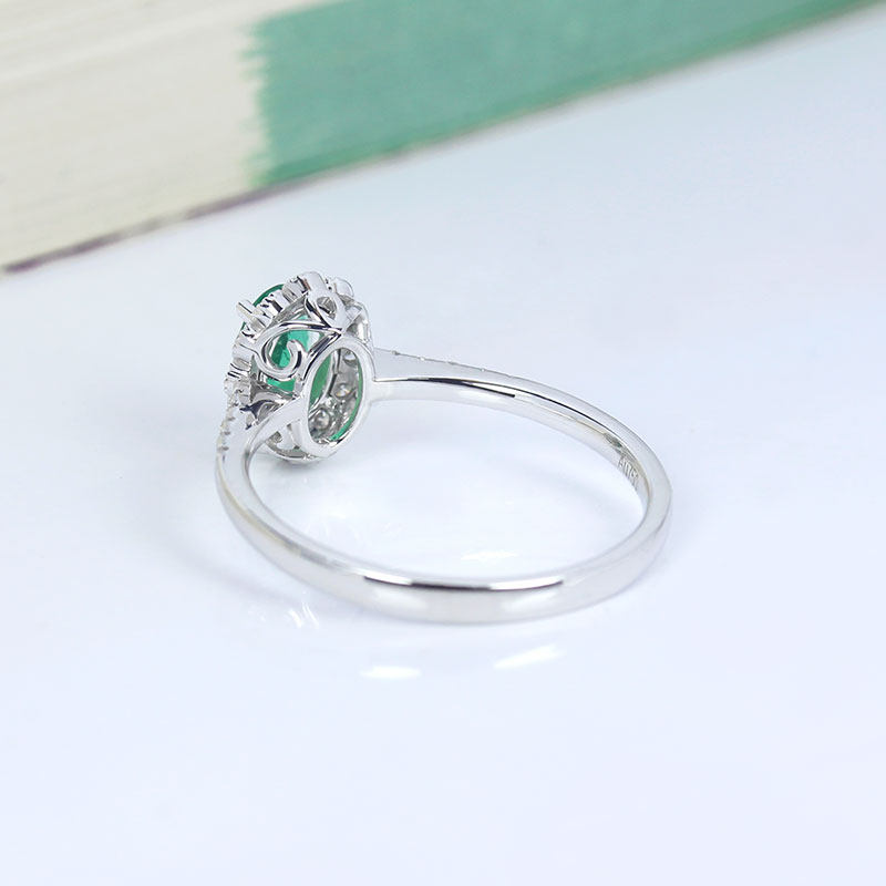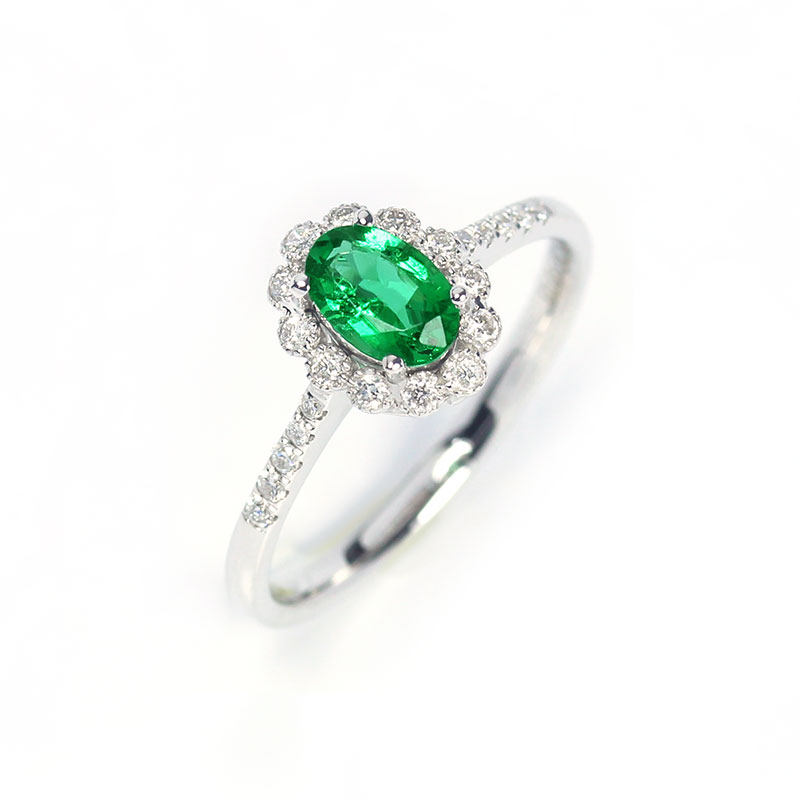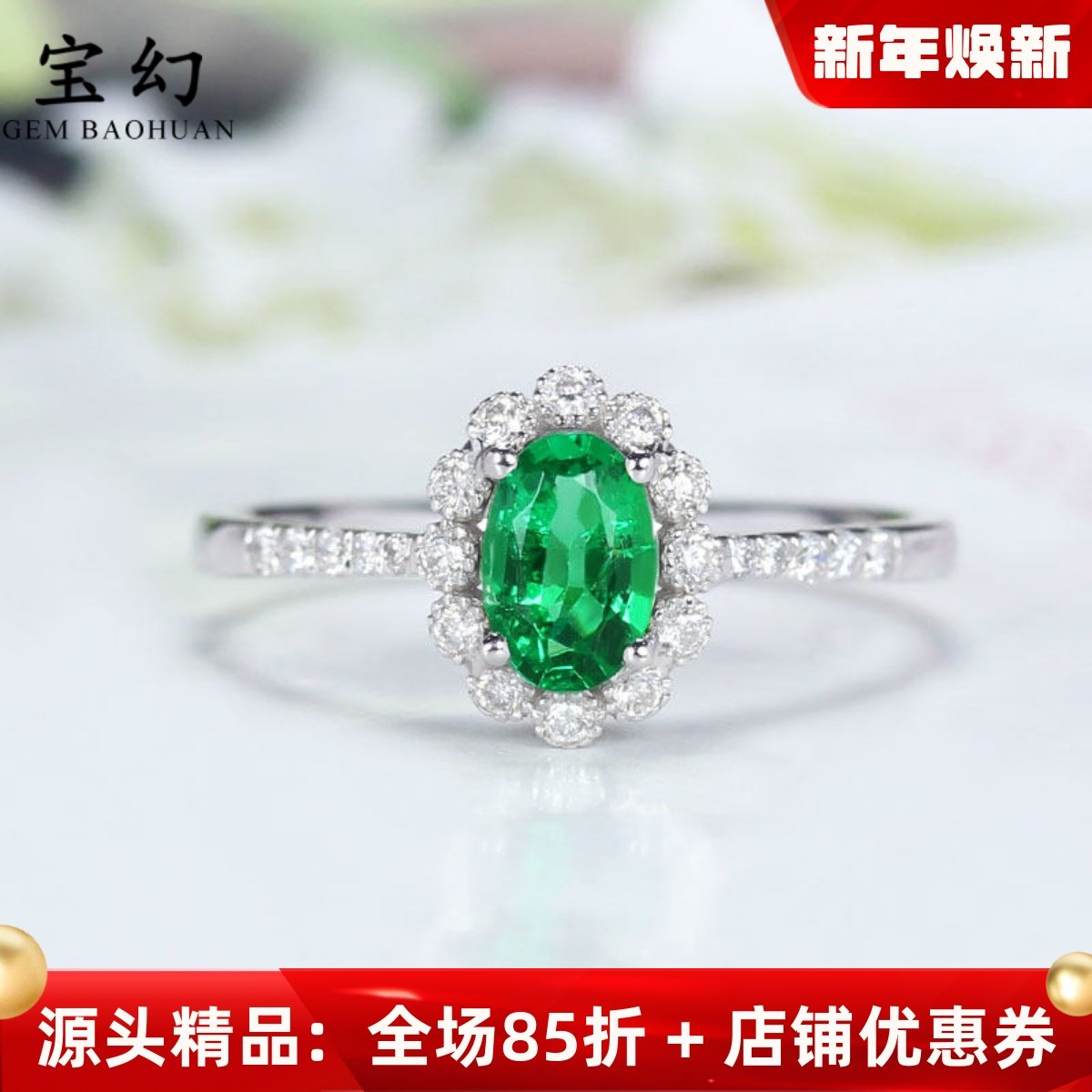 18K白金天然祖母绿钻石蕾丝复古戒指 无染色油翠绿色宝石手饰女款