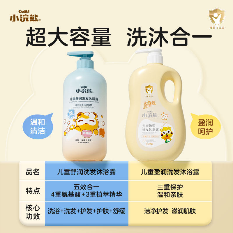 小浣熊儿童洗发沐浴露儿童沐浴露乳宝宝婴儿洗澡护用洗发水二合一