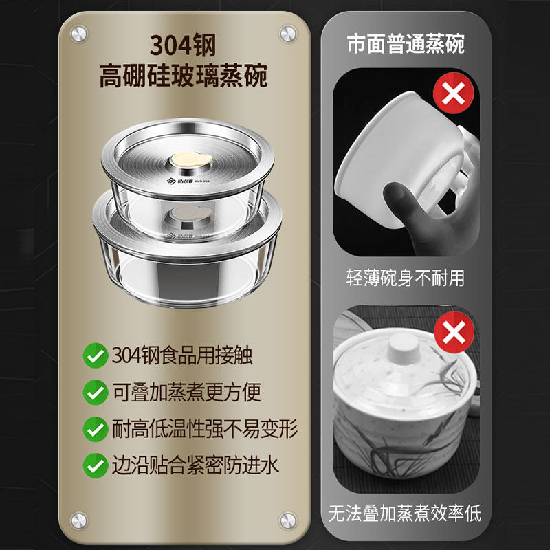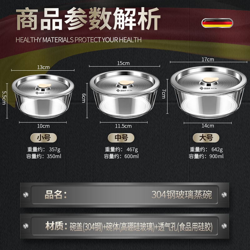 蒸水蛋碗玻璃宝宝辅食蒸碗家用蒸菜专用碗隔水炖盅耐高温带盖汤碗