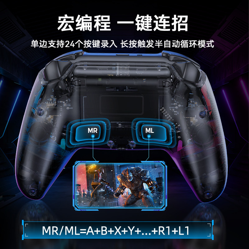 良值PS5手柄 PC无线蓝牙手柄SLIM PRO游戏机连发PS4手柄震动透明