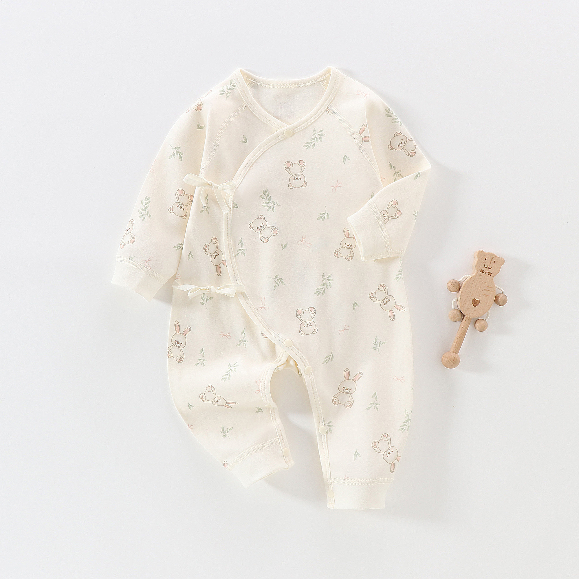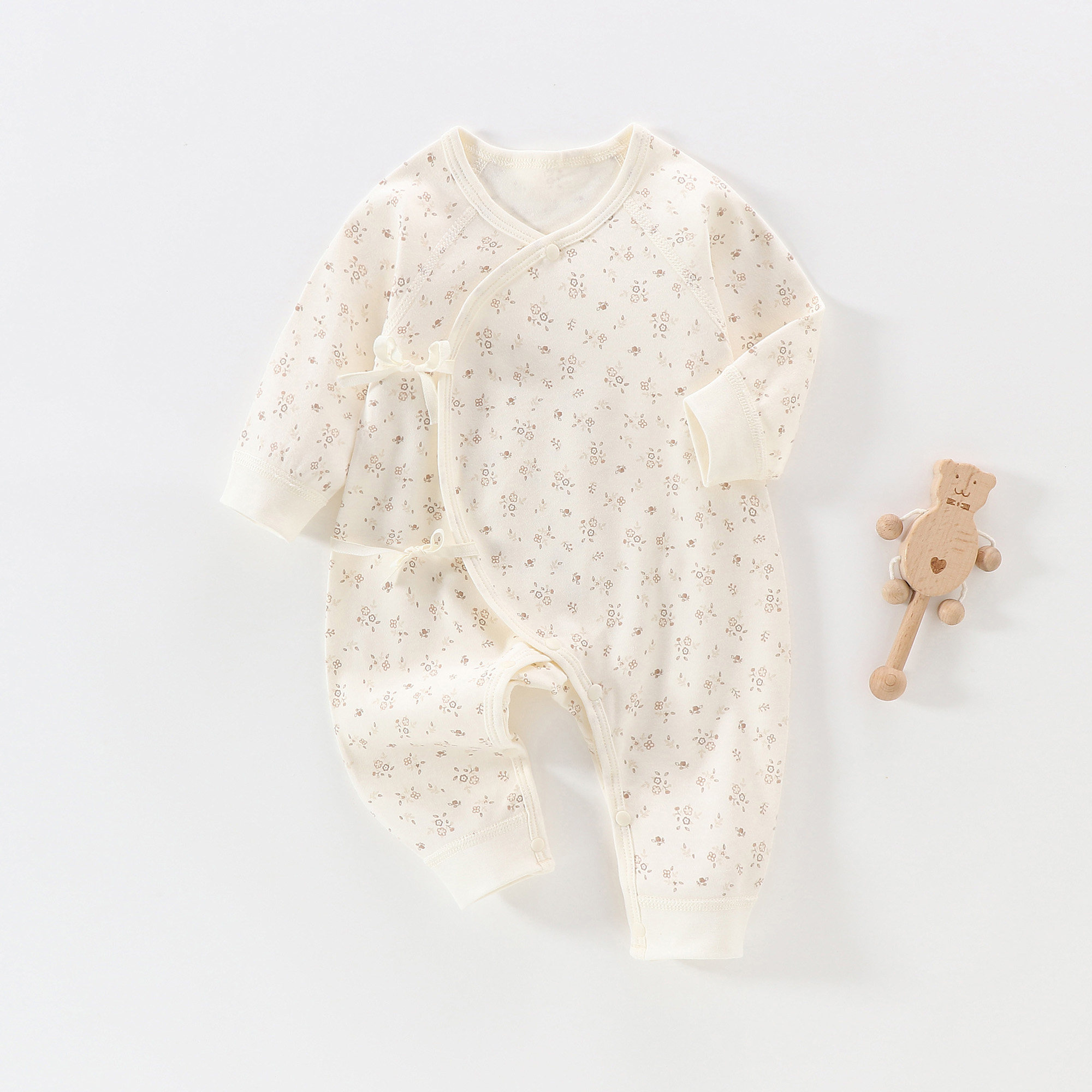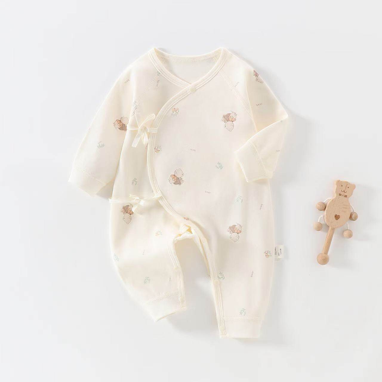 婧麒新生儿婴儿衣服宝宝连体衣偏襟系带哈衣婴幼儿蝴蝶衣打底睡衣