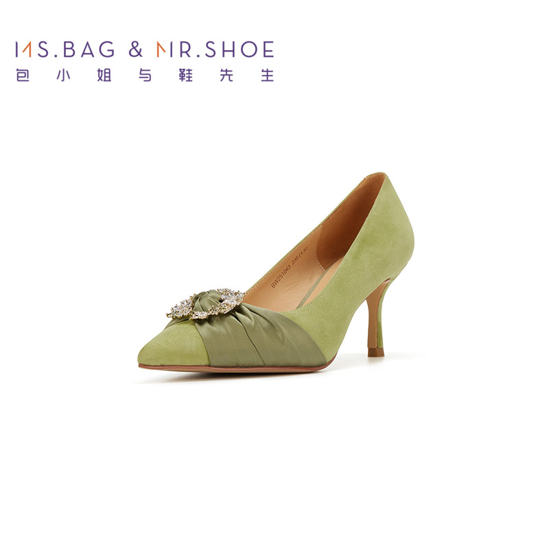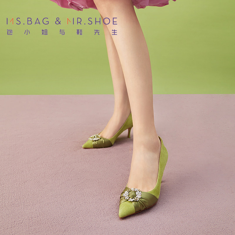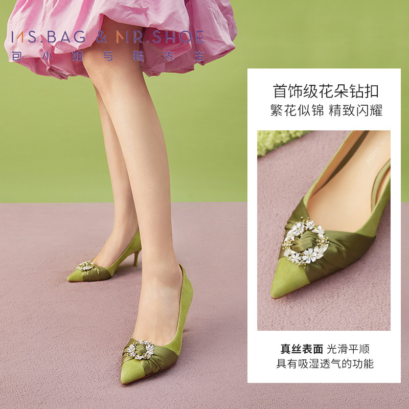 包小姐与鞋先生春季精致花饰钻扣高跟浅口单鞋女251043