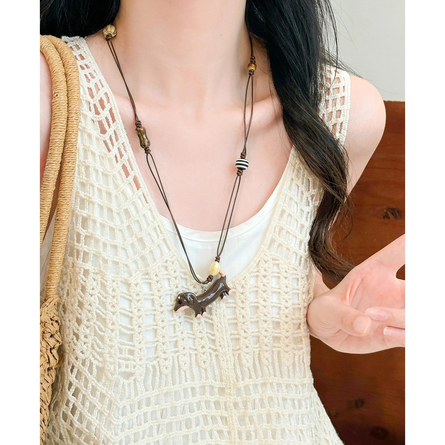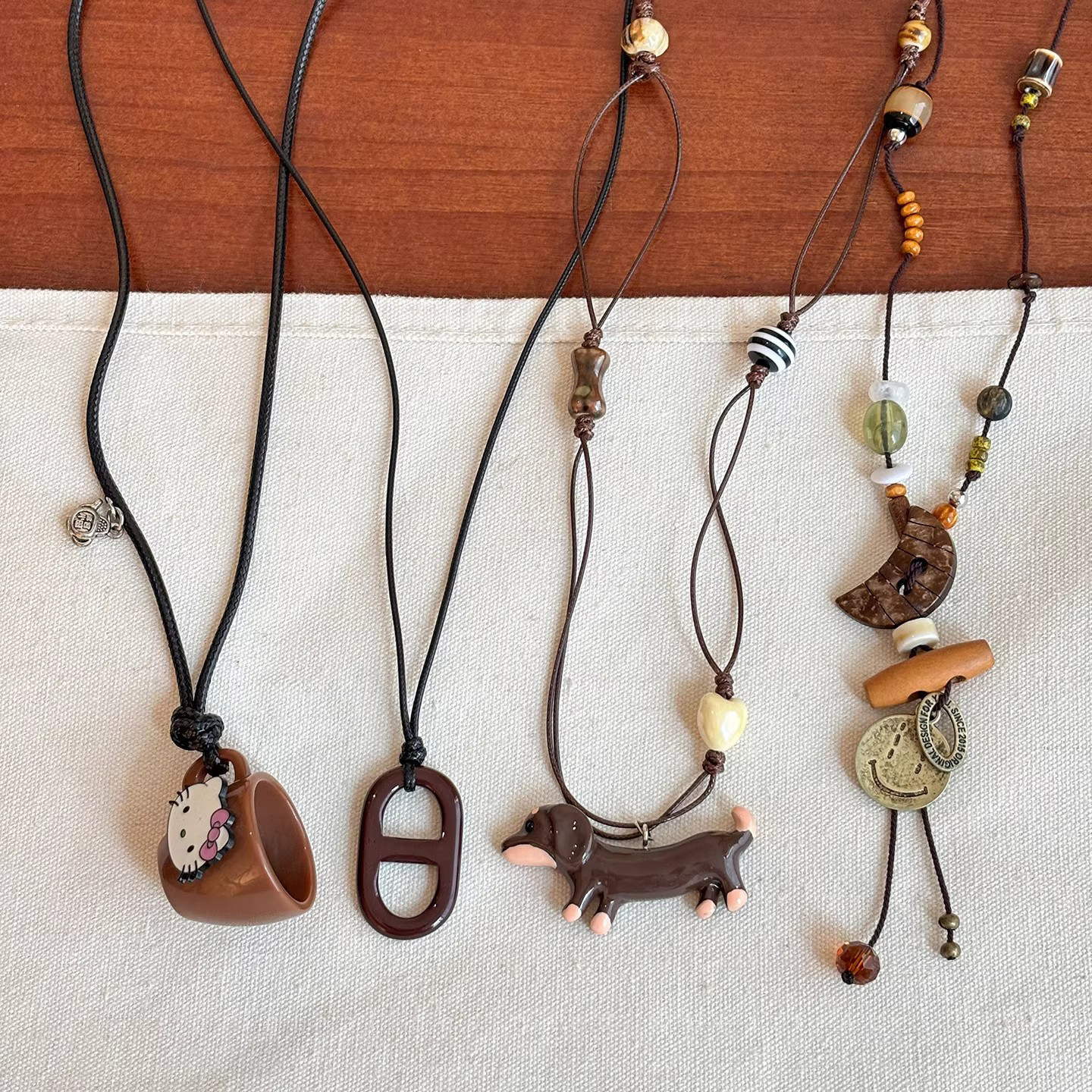 美拉德波西米亚叠戴毛衣项链女棕色复古穿搭choker锁骨链高级配饰