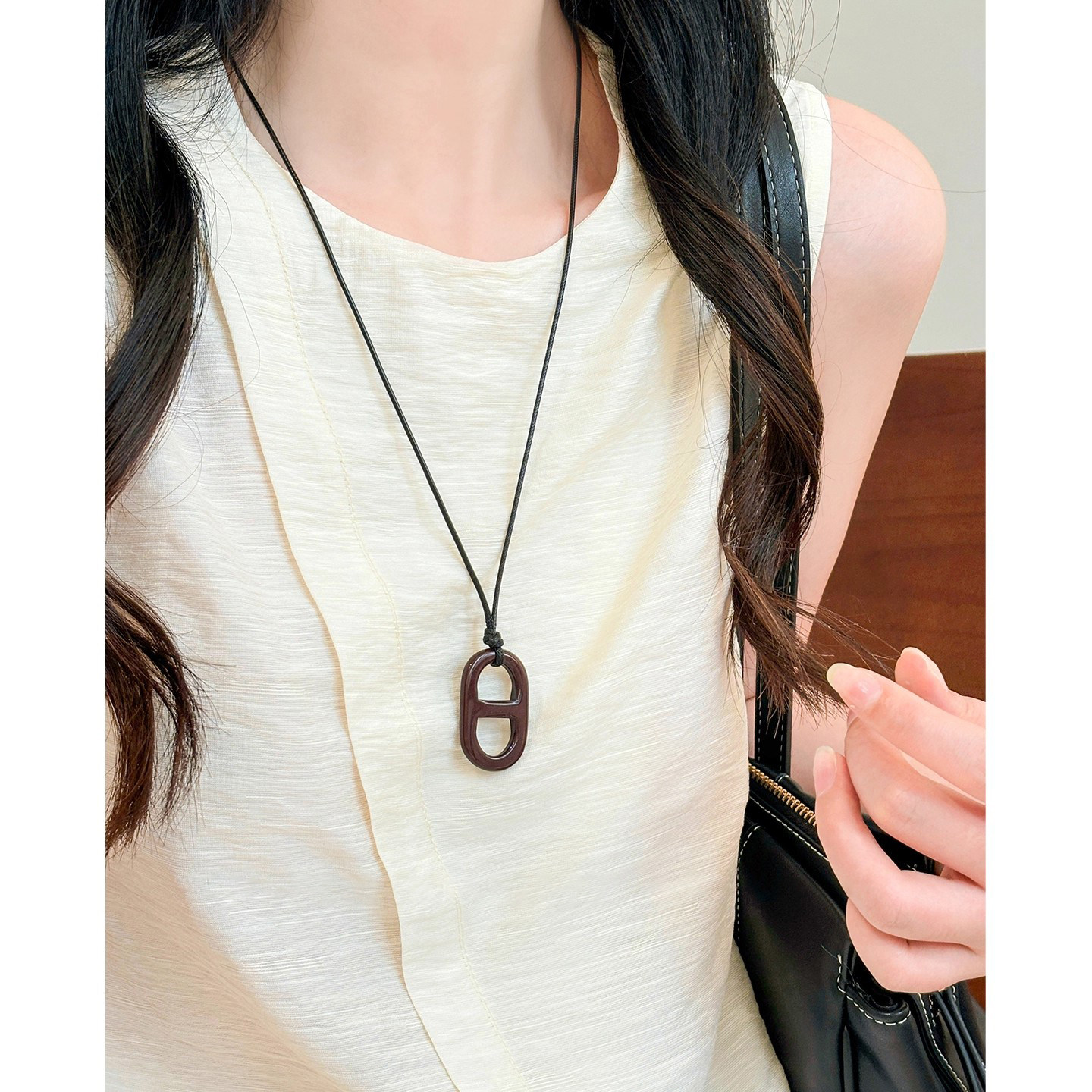 新中式国风长款木质串珠项链女复古民族风毛衣链波西米亚吊坠配饰