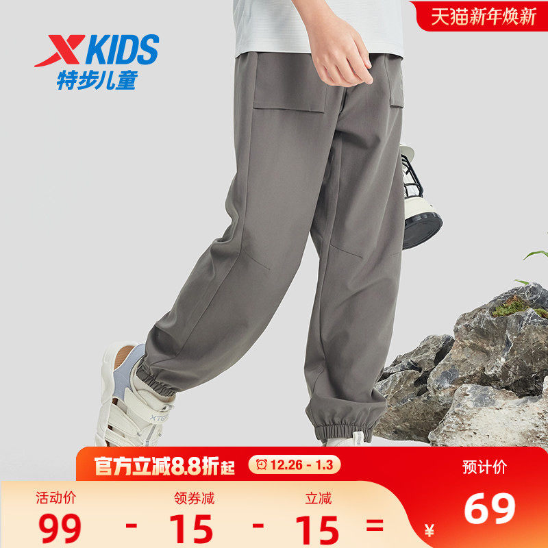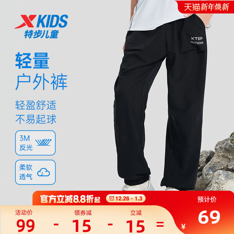 特步童装男童户外运动裤2025秋冬新款儿童速干伞兵裤大童宽松长裤