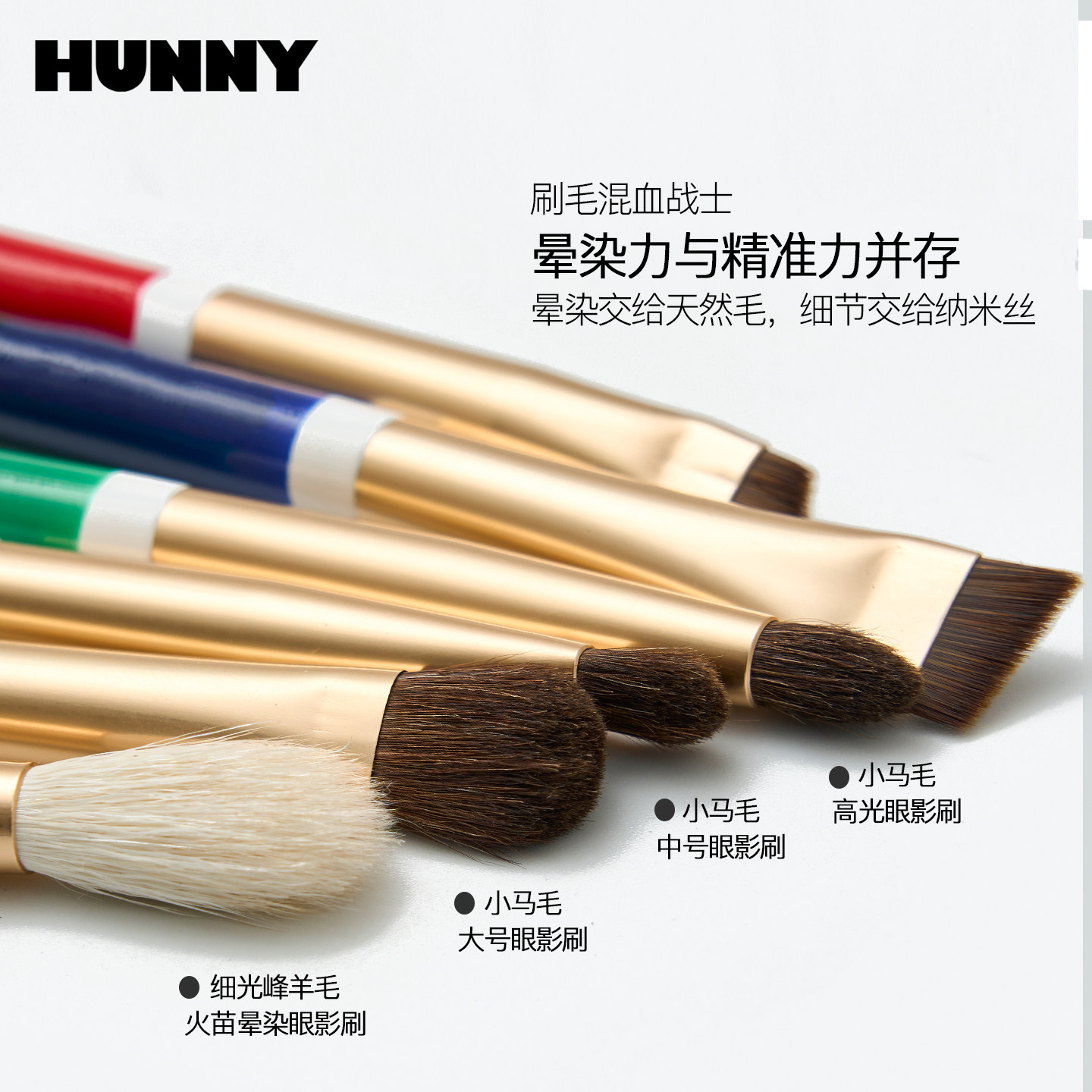 HUNNY动物毛眼影刷套装柔软晕染眼妆刷眼线刷卧蚕刀锋眉刷化妆刷