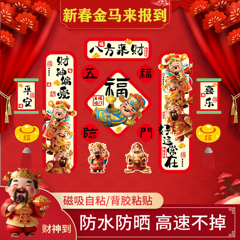 2026马年对联磁吸汽车贴新年福字电动车过年春联摩托车门窗花贴纸